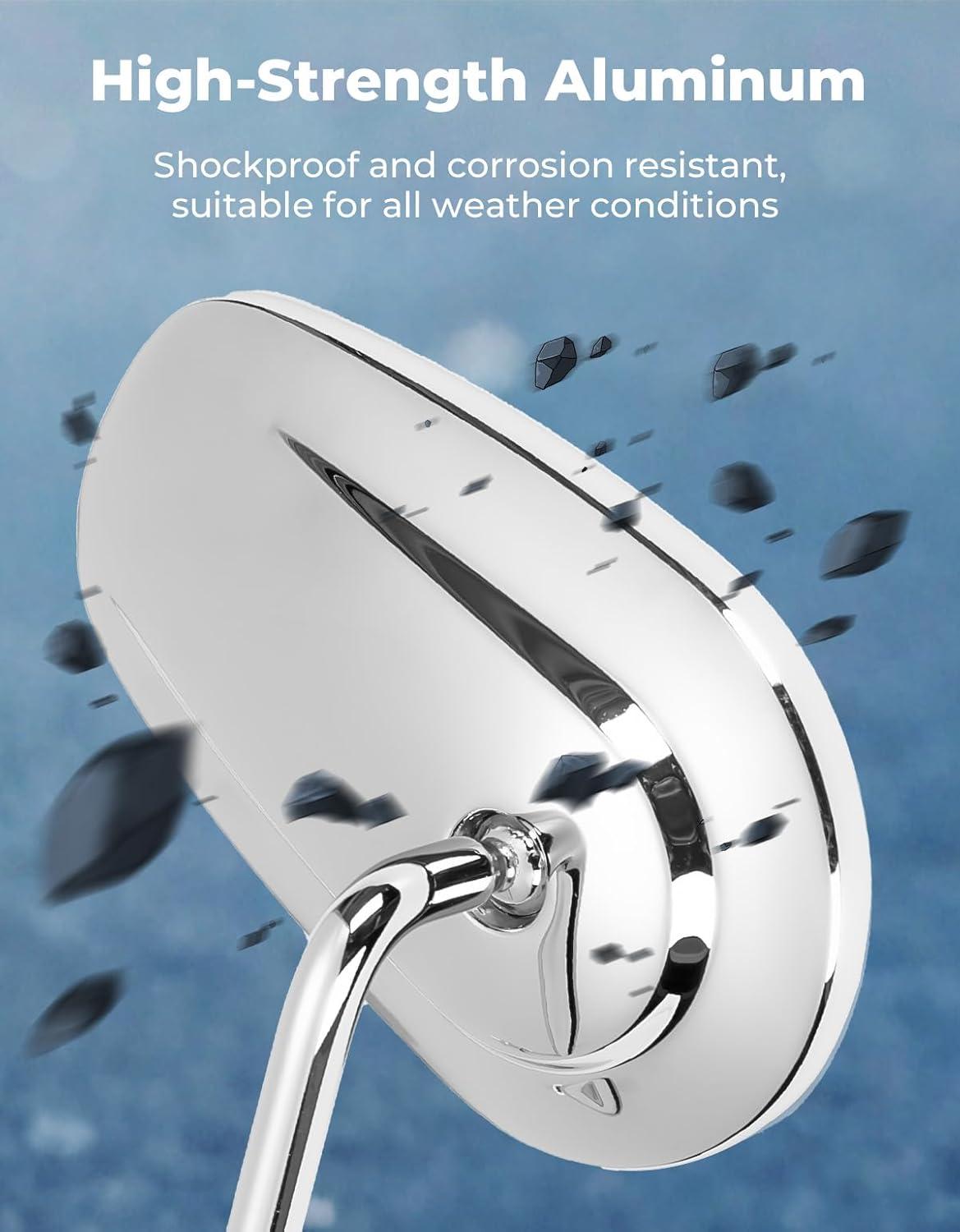 Premium Aluminum Alloy: The motorcycle mirrors' housing and stem, crafted from high-quality aluminum alloy, offer a robust structure. The sleek design not only looks great but also withstands impacts, providing reliable performance in all weather conditions