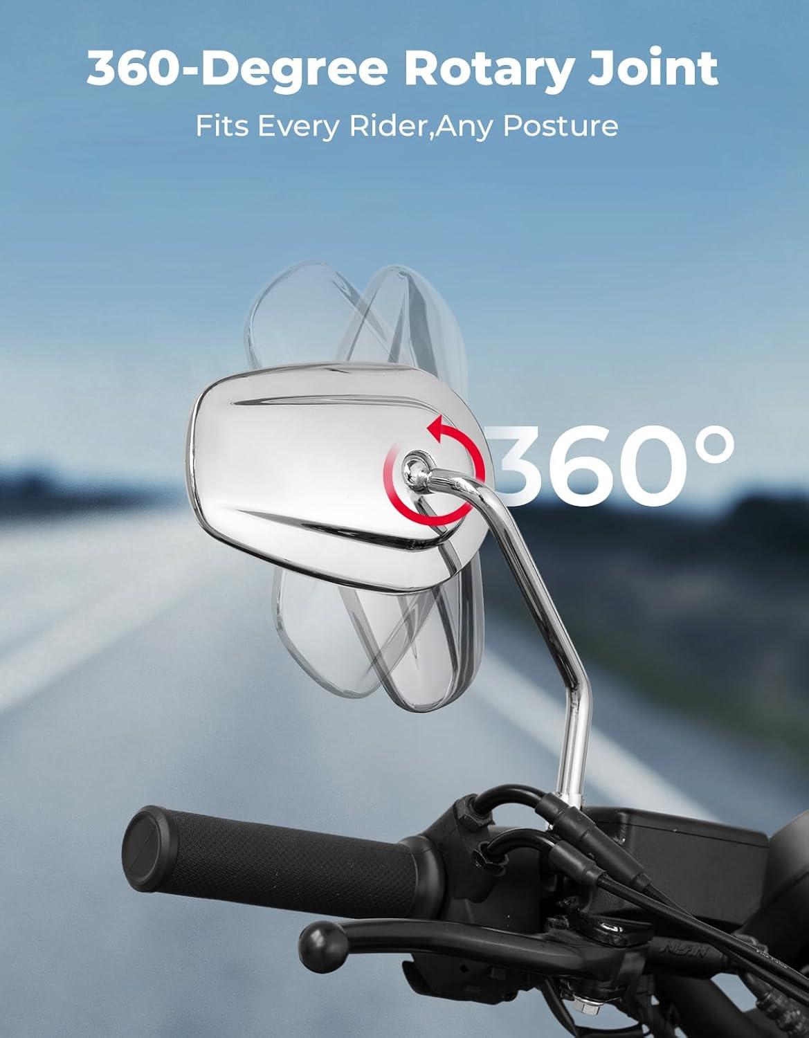 360-Degree Adjustable Ball Joint: Equipped with a 360-degree adjustable ball joint, allowing you to freely adjust the mirror angle to fit different rider heights and riding postures. Easily customize to your optimal viewing position for enhanced visibility.