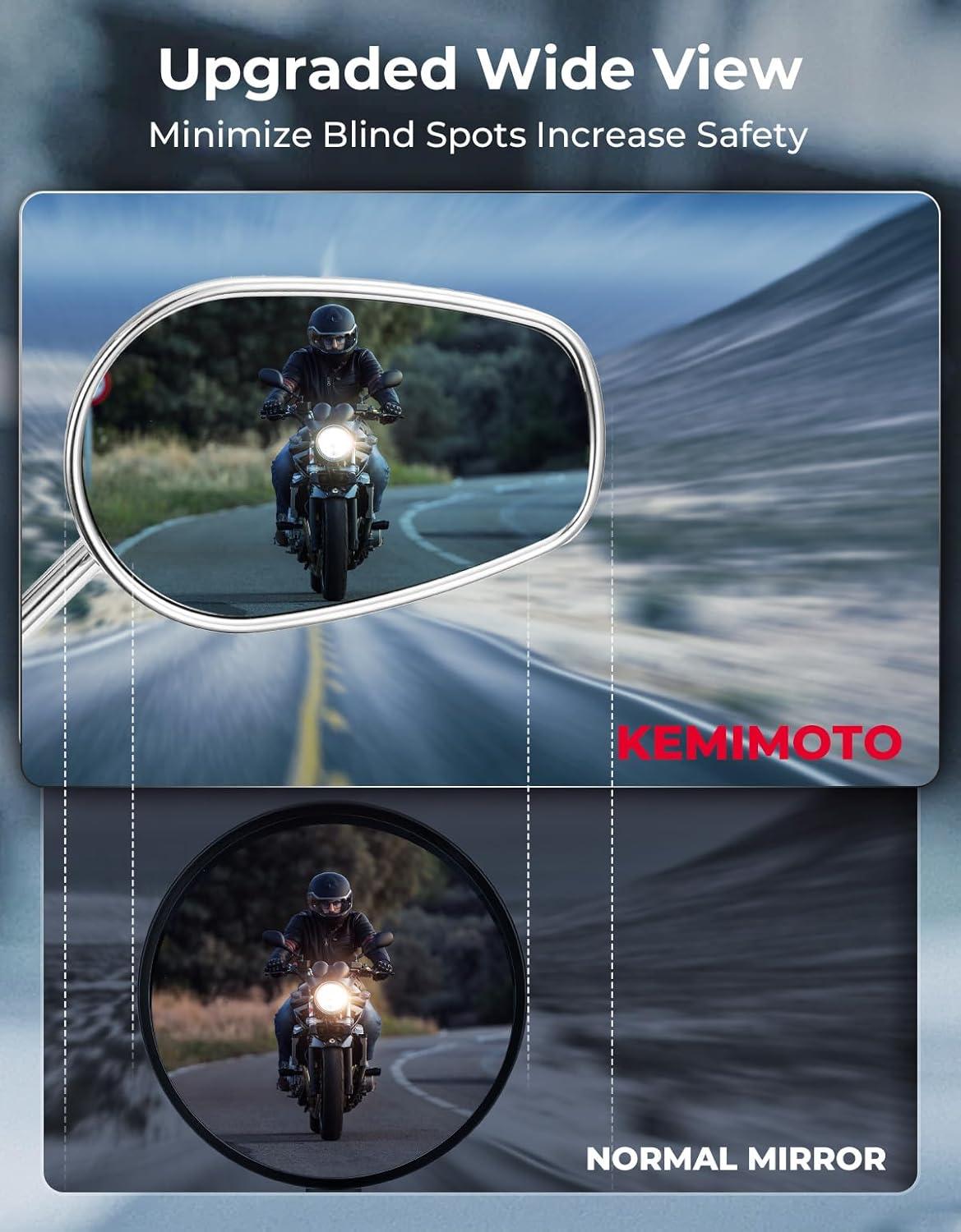 imageKEMIMOTO Universal Motorcycle Rear View Mirrors M10 Billet Aluminum Heavy Duty Handlebar Side Mirrors for Cruiser Sport Naked Bike ADV Touring Motorbikes SilverBlack