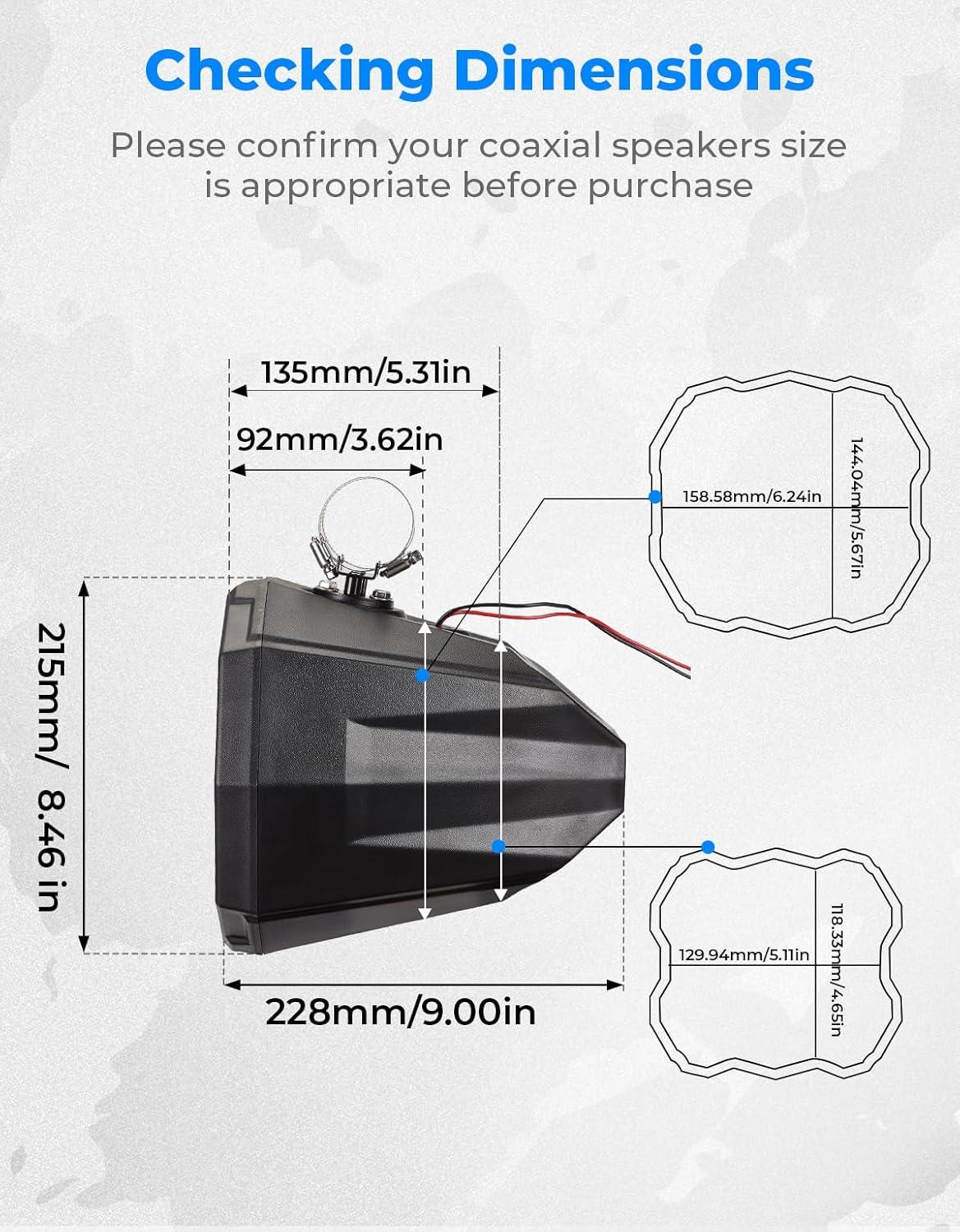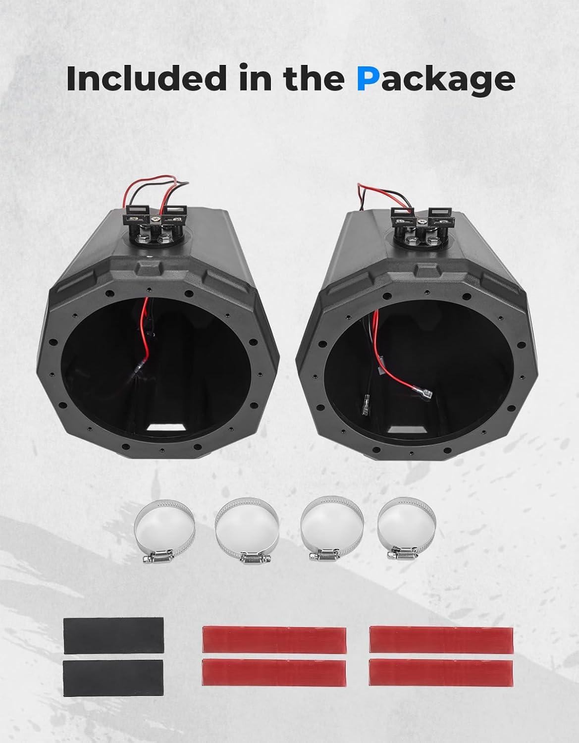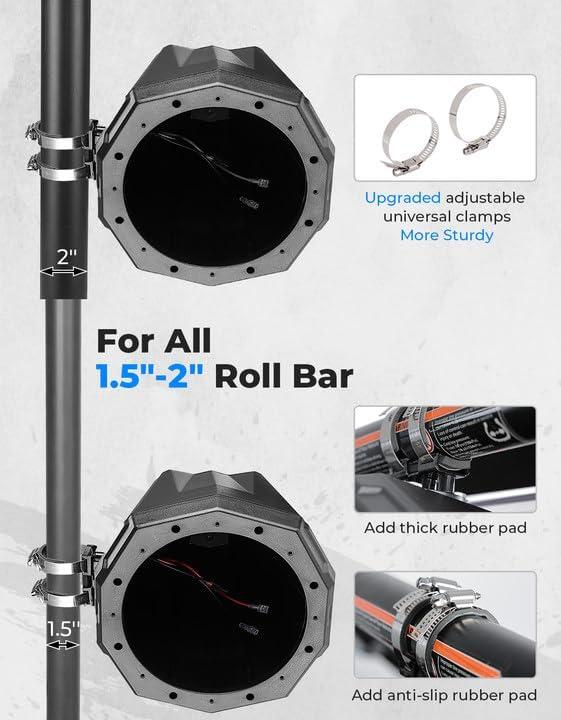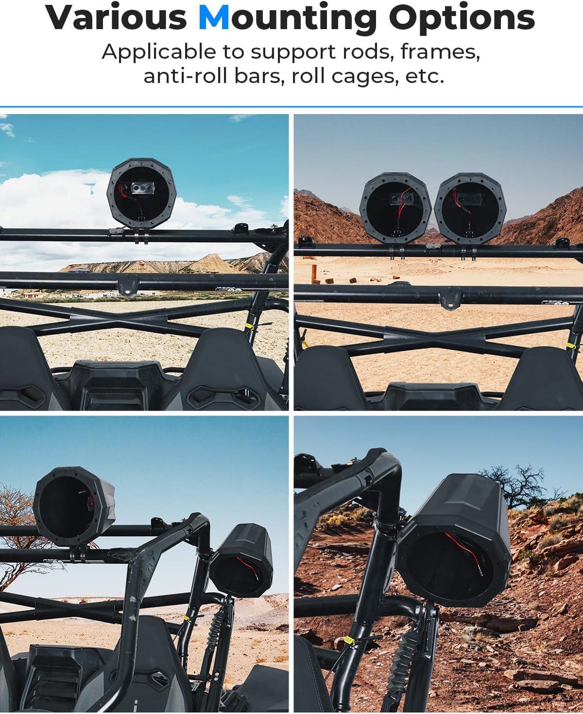 Multiple Mounting Positions : You can mount this speaker pod enclosure in various positions on your UTV, such as on top support bars, poles, frames, and roll cages, allowing you to enjoy immersive sound throughout your ride