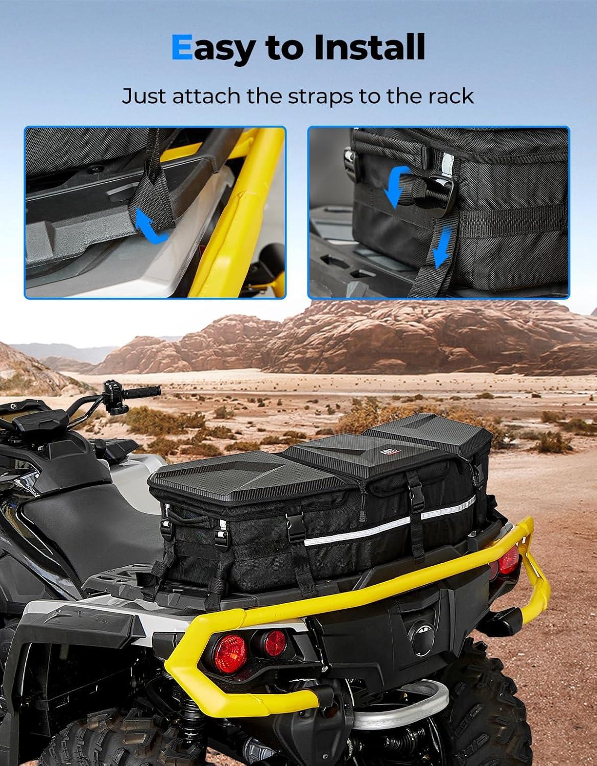 Easy to Install for most ATVs: Easy to install and remove, simply attach the straps to the rack slots and tighten all the straps to secure the bag, no drilling or screwing required
