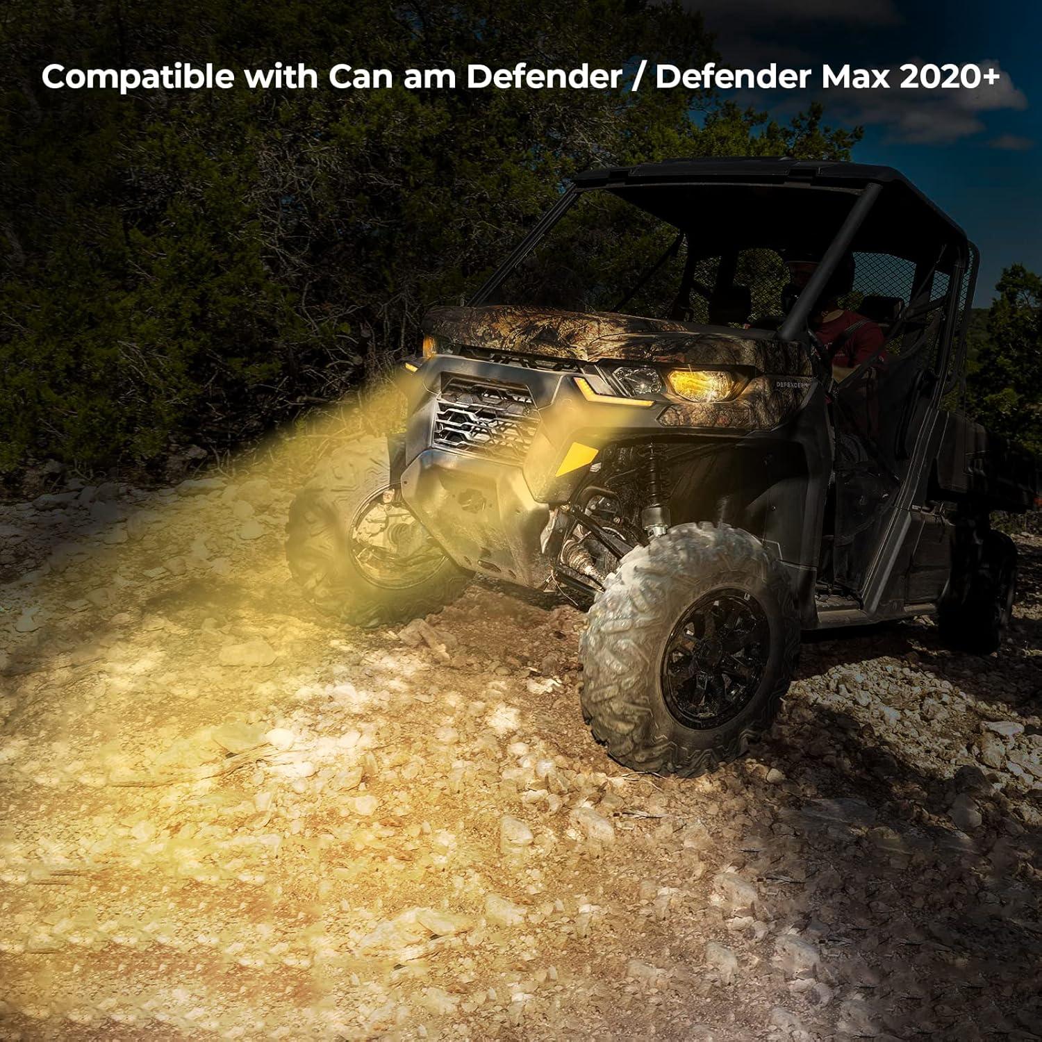 KEMIMOTO Upgraded DRL Signal Light, Flashing Flowing Yellow LED Daytime Running Light DRL Fang Headlight, Compatible with Can-Am Defender & Defender MAX 2020+