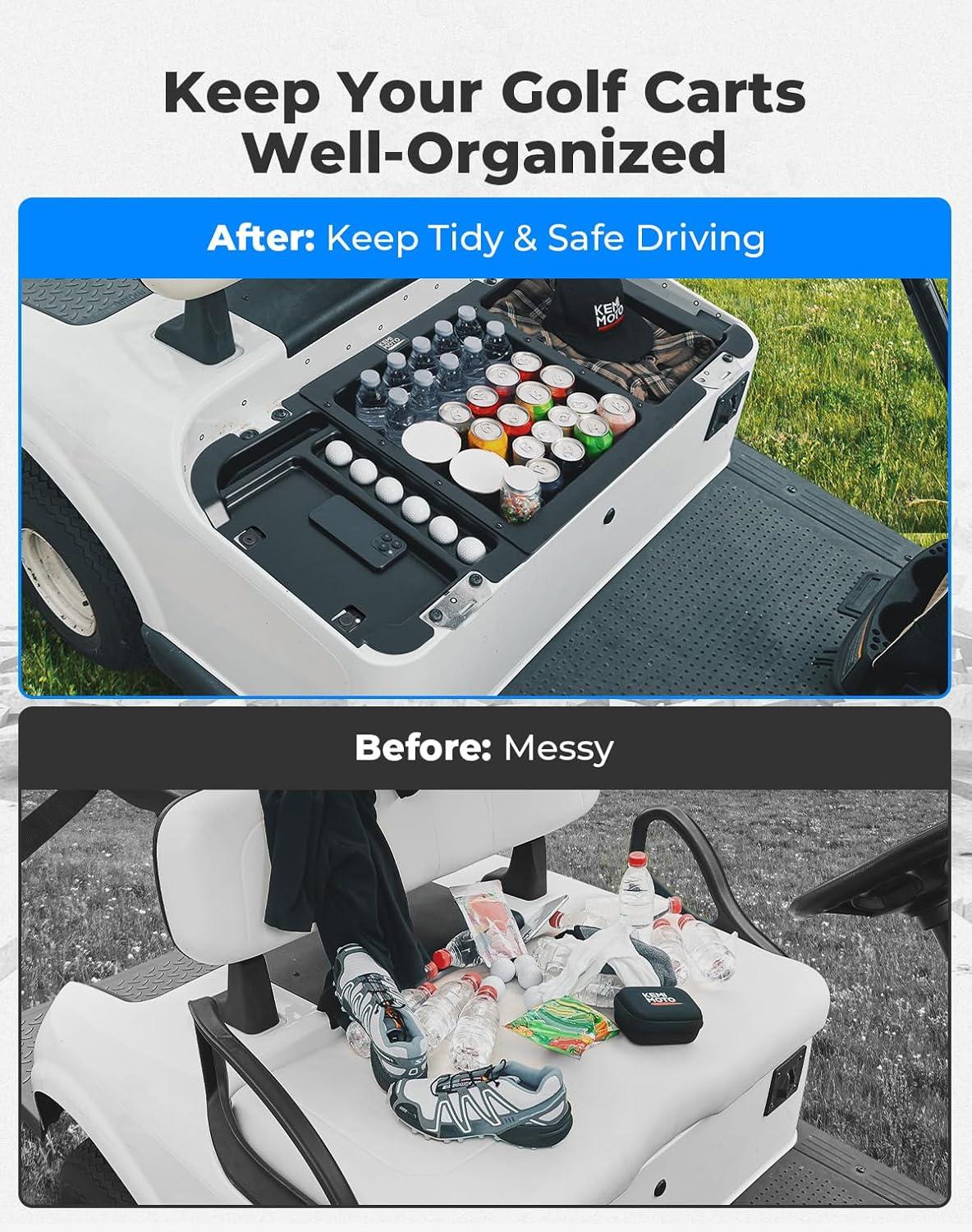 Large Storage Space: The golf cart under-seat organizer provides ample storage space for neatly arranging your items. When playing golf, you can keep small items on the tray to prevent losing them