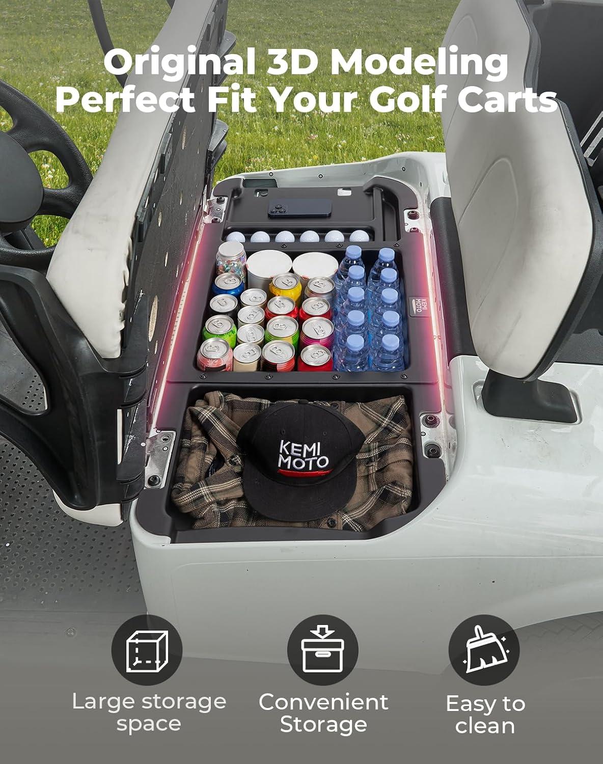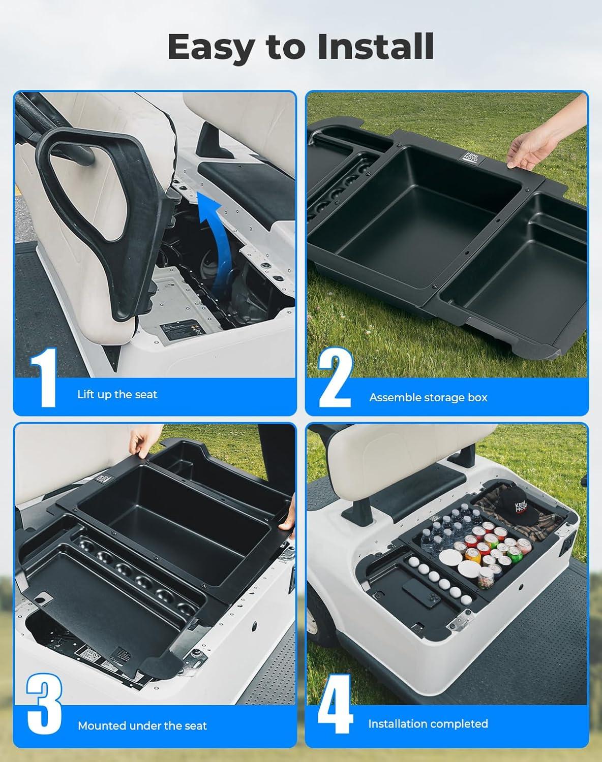 Wide and Well-organized Application: When not needed, you can store items such as tissues, wallets, and phones in the compartment under the seat. If you like to make things well-organized, this is your best choice for friends, family, colleagues, or business partners who own a golf cart. Note: Don't put anything too high or the seat won't close