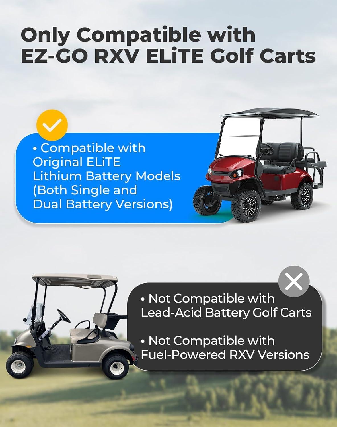 Upgraded Compatibility: Compatible with EZ-GO RXV ELiTE Golf Carts with original lithium battery compartments, fitting both single and dual battery versions. NOT compatible with lead-acid battery versions or gas-powered RXV models. Please confirm compatibility before purchase