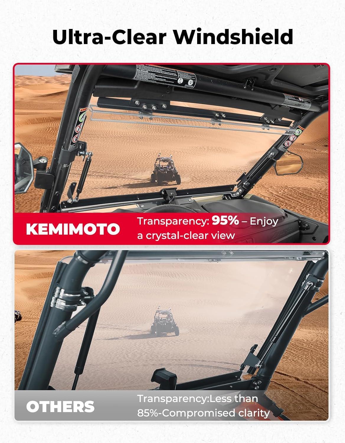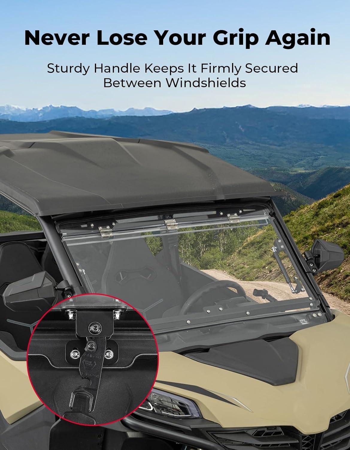 Enhanced Durability and Stability: Equipped with heavy-duty reinforced metal clamps on both sides, this Flip Windshield stays securely in place without lifting at the edges. It delivers outstanding stability and reliable performance during off-road adventures