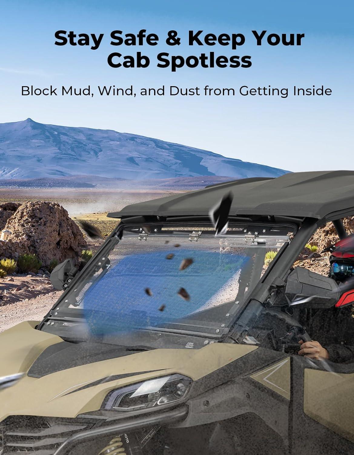 Custom Comfort with 3-in-1 Options: The Flip UTV Front Shield features a multi-position adjustment handle, allowing you to choose from three convenient settings. Flip it up for a clear view, close it down for full coverage, or open the vents for enhanced airflow and ventilation in any weather