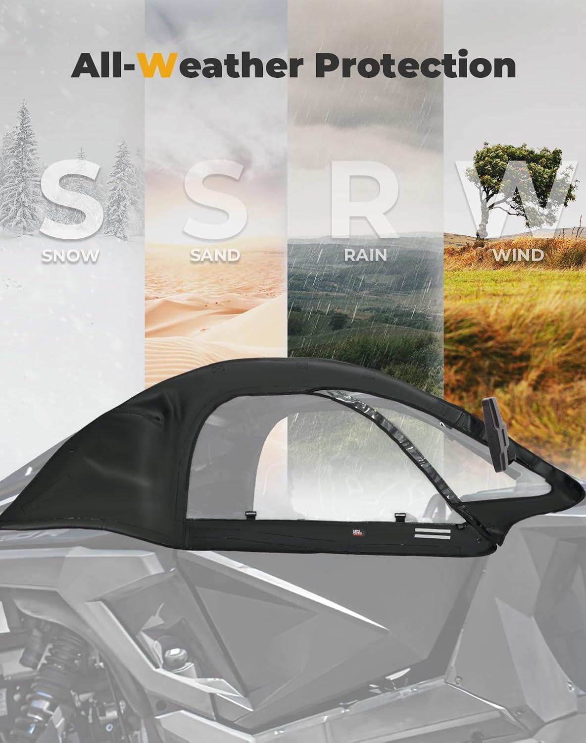 New Durable Zippers: Laboratory test results indicate that they can withstand a tensile strength of 270N, compared to less than 180N for standard zippers. The enclosure kit is only compatible with Polaris RZR PRO R (2-seat) models