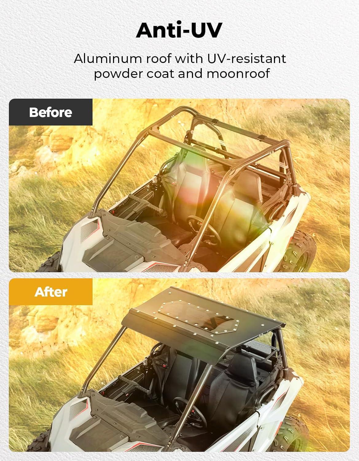 Compatible Models: This KEMIMOTO UTV roof is specifically tailored for the model which is compatible with 2022-2026 Polaris RZR 200 EFI. Achieve a custom fit with our perfect 3-in-1 replacement for factory part 2889739 and 2884572