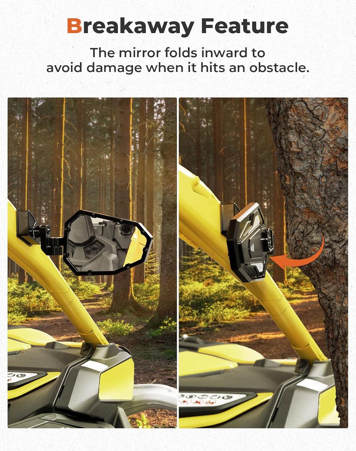 Breakaway Feature: The KEMIMOTO side mirror is equipped with a Breakaway feature, and the mirror can be folded inward if it hits an obstacle. This prevents the mirror from being damaged