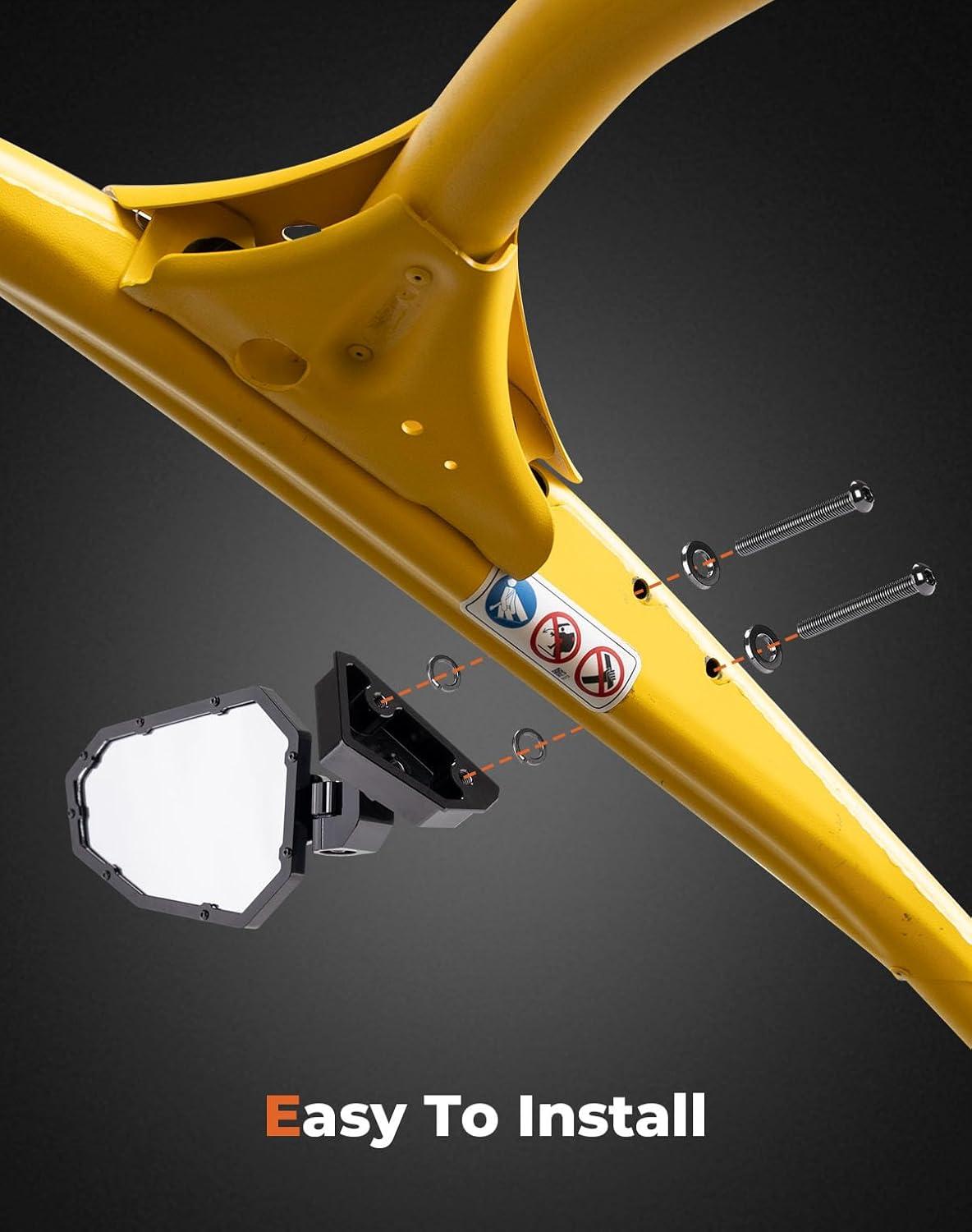 Adjustable Angle: KEMIMOTO SXS rearview mirror has three adjustable angles: up and down, left and right, and 360°, so you can quickly adjust the mirror angle when you encounter different road conditions during driving, providing you with a wide field of view