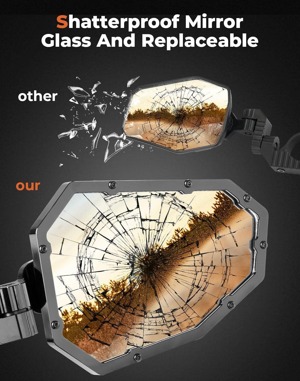 Shatterproof Function: The UTV rearview mirror uses shatterproof tempered glass, which prevents you from being injured by sharp fragments when the glass is damaged