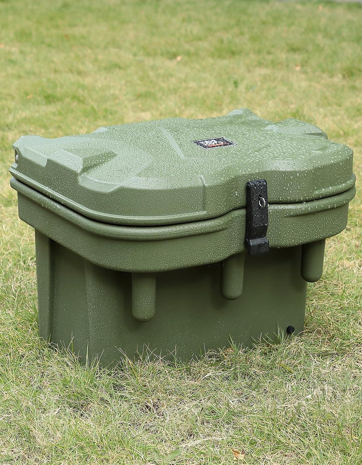 Solid and Anti-theft Box: With a textured black, heavy-duty lid made of durable LDPE (low-density polyethylene) material, this KEMIMOTO box for cargo storage can withstand 75kg and has improved leak and pressure resistance. A combination lock and wire rope help safeguard your box from theft