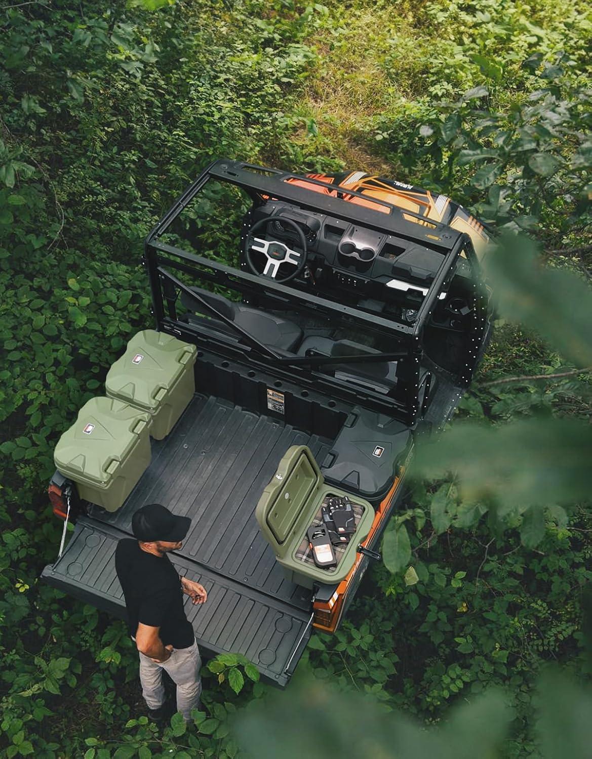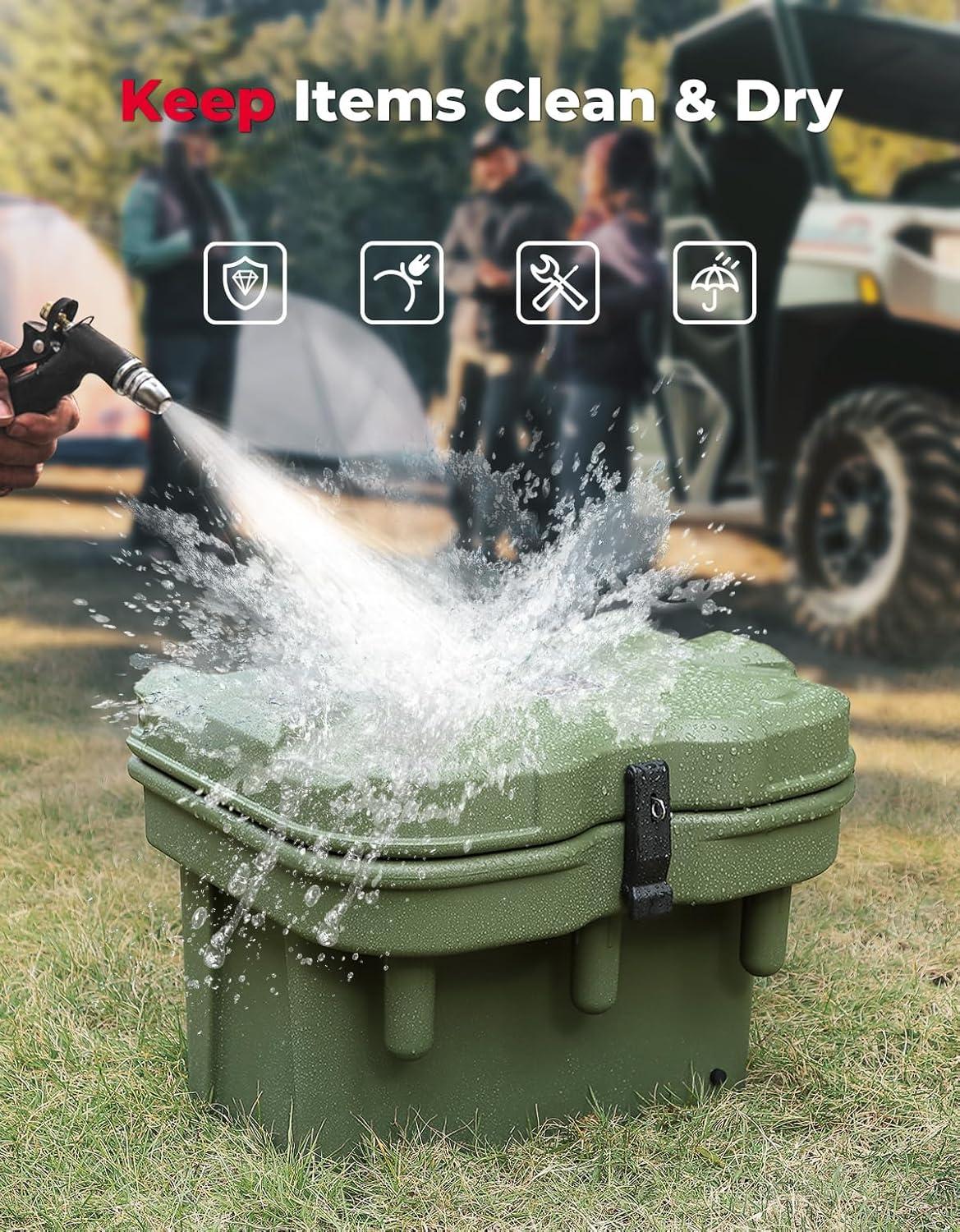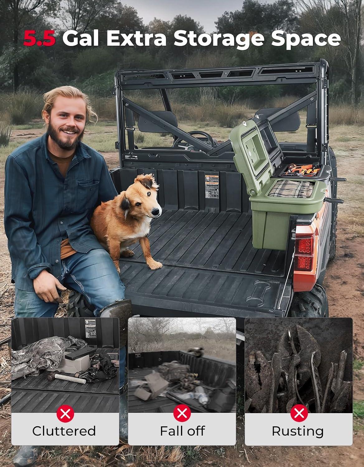 Maximize Bed Space: The KEMIMOTO 21L/5.5GAL UTV bed box has maximum storage space for some snacks, tools, gloves, etc. The storage box can be put anywhere on the left or right side, giving you plenty of space for your trip needs