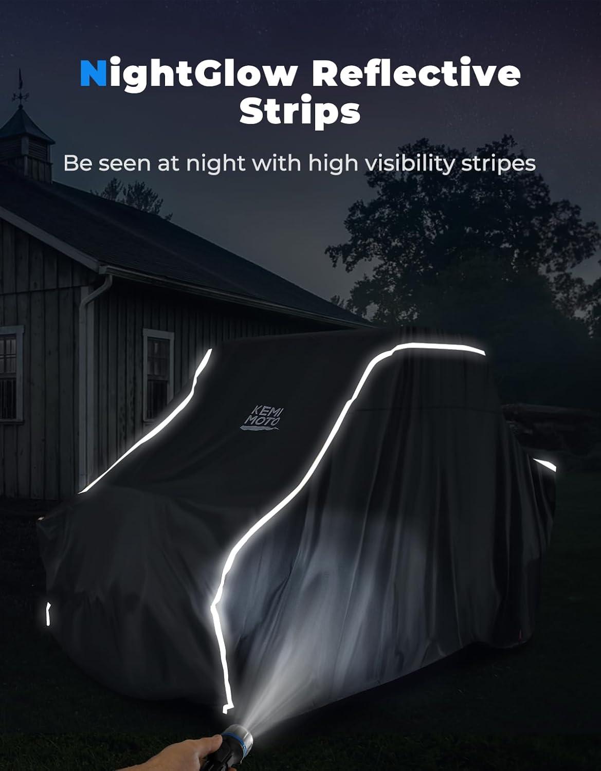 Be Seen at Night: The 2 seater cover features long reflective strips on both sides, providing a large reflective surface area for more effective warning signals to prevent collisions after parking at night