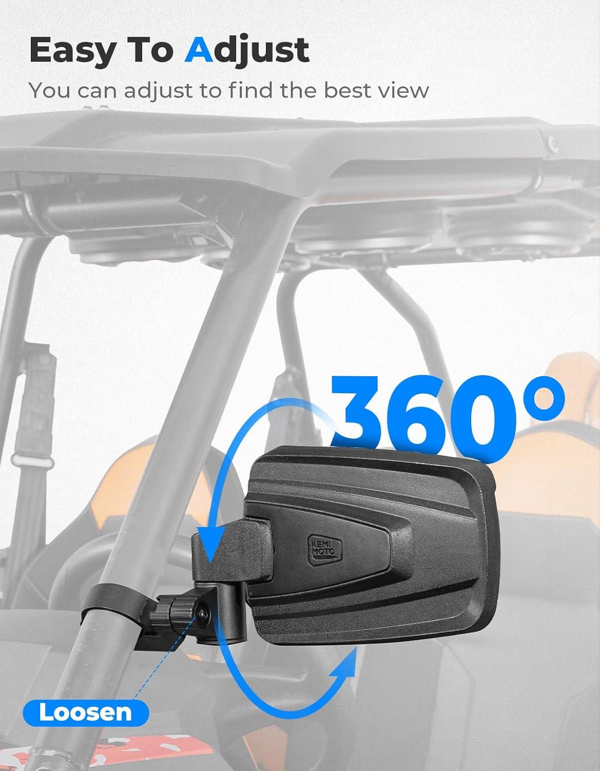 Spring Back Mirrors – Automatic Reset Function: KEMIMOTO's Latest 2024 Mirror Design, when you hit branches or other obstacles, the mirror automatically folds and resets itself, so you don't have to adjust it manually. Plus, when you're towing a trailer, the mirrors can be fully folded and locked in place for added protection