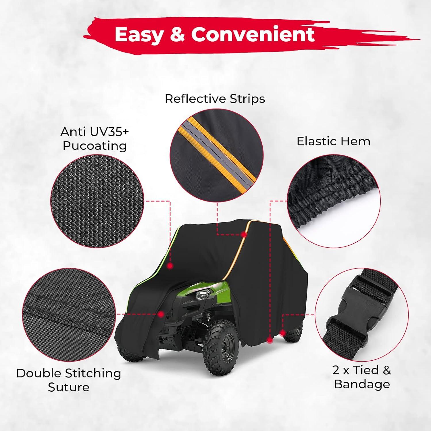 UTV Covers – Protective Function: Our KEMIMOTO cover is thick and more durable than others. Keep your SXS and rig intact, clean, and tidy, immune to foreign objects when you idle it. It has to be said that it is frustrating to clean UTV every time you use it. With this cover, your UTV will always be pristine. Simply remove the cover, jump on, and go