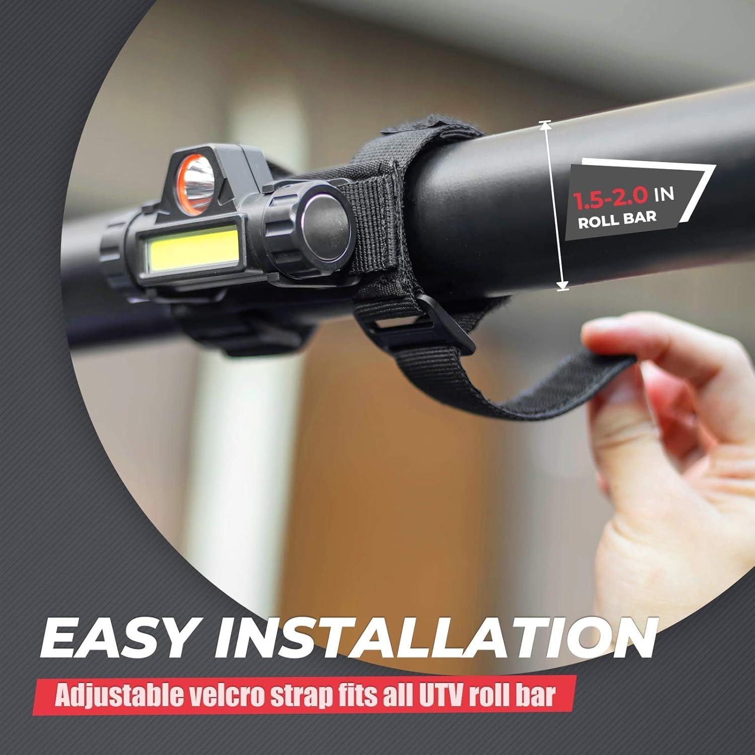 Wide Application: UTV interior dome light with irradiation Angle adjustable mounting brackets can be used for camping, caving, barbecuing, jogging, night walking, mountain climbing, fishing, exploring, night reading, etc.