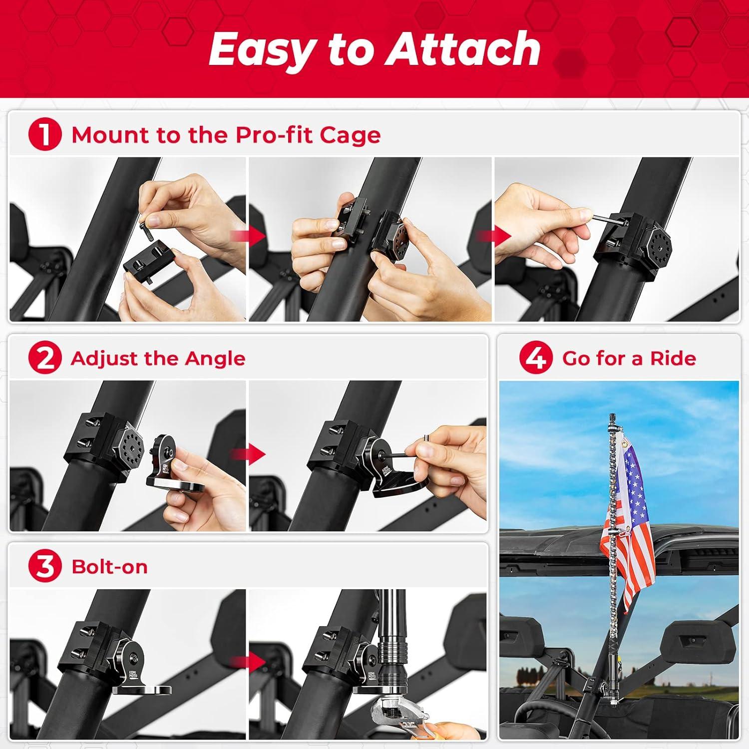 Wide Application: Universal fits all Pro fit cage UTVs. The whip light mounting brackets will be compatible with Polaris Ranger General Can am Defender Maverick Trail Sport and Can am Commander 2021+. The flag mount can be mounted on all channel-shaped bars. You can also use these pro-fit mounting brackets to hold your off-road led light bars, CB radio antennas, whip lights, etc