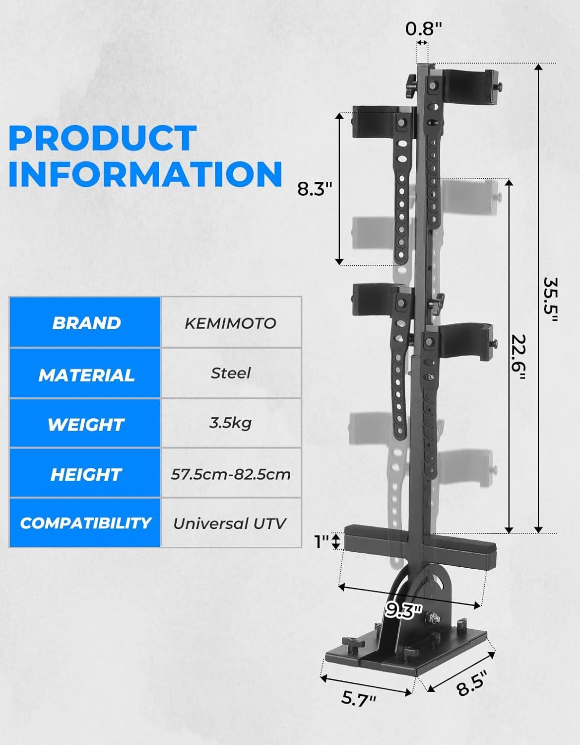 KEMIMOTO UTV Hunting Tool Holder Rack, Tie Down Anchor Compatible with Polaris Ranger General Sportsman, Bow Rack Tools Holder with Rubber Snubbers for Added Security