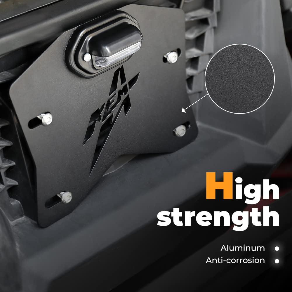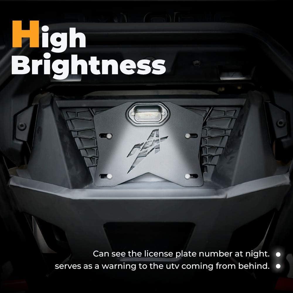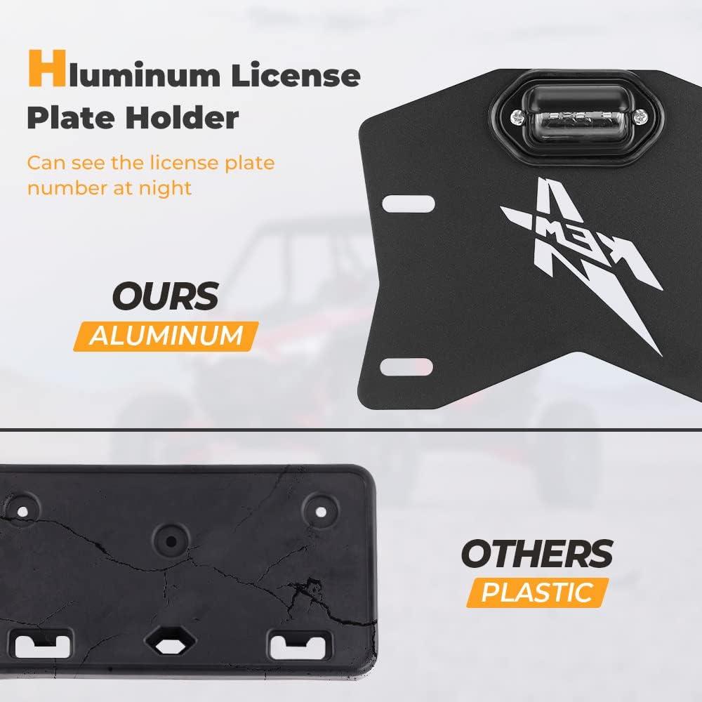 Fitment: UTV ATV license plate holder fits UTV, ATV, Trailer, Truck, RV, Boat, Golf Cart, Snowmobile, etc. License plate holder with light street legal kit compatible with Can-Am Maverick X3 Polaris RZR Ranger Sportsman Arctic Cat Commander Defender Outlander Renegade DS SXS, and the list goes on