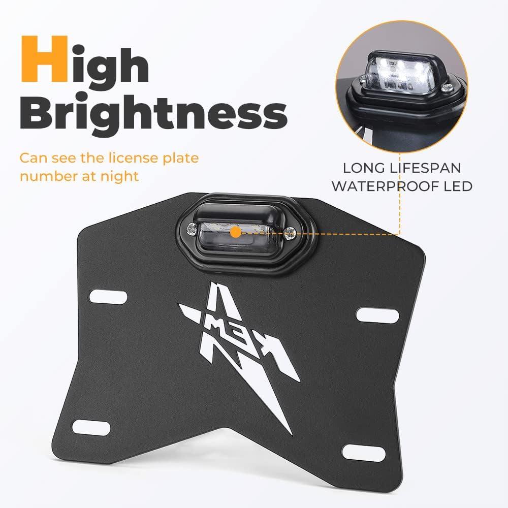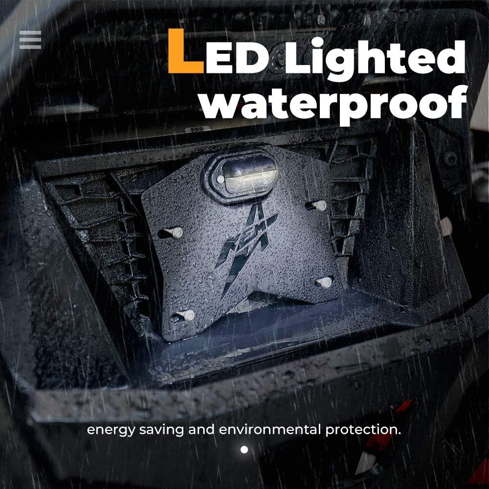 Material: Kemimoto UTV license plate holder with LED light is made of aluminum with black powder coating on the surface, which will be durable and good-looking