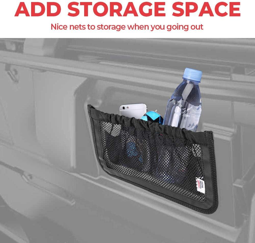 Perfect material: The rear storage nets are made of durable polyester fabrics which won’t discolor, you will have the right amount of stretch to put things in and get them out