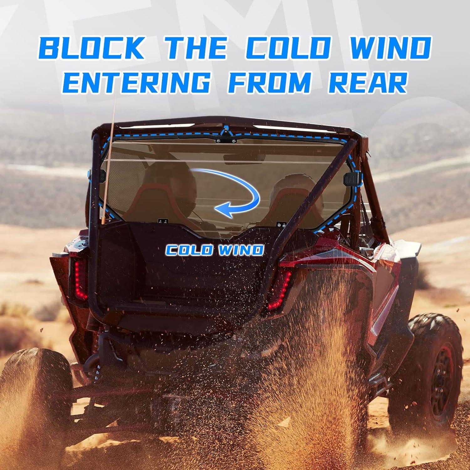 【Ensuring Comprehensive Protection】The rear windshield provides comprehensive protection, effectively blocking rain, snow, dust, and splashing mud from entering the vehicle. Additionally, it shields against sunlight. It is suitable for any weather and terrain conditions