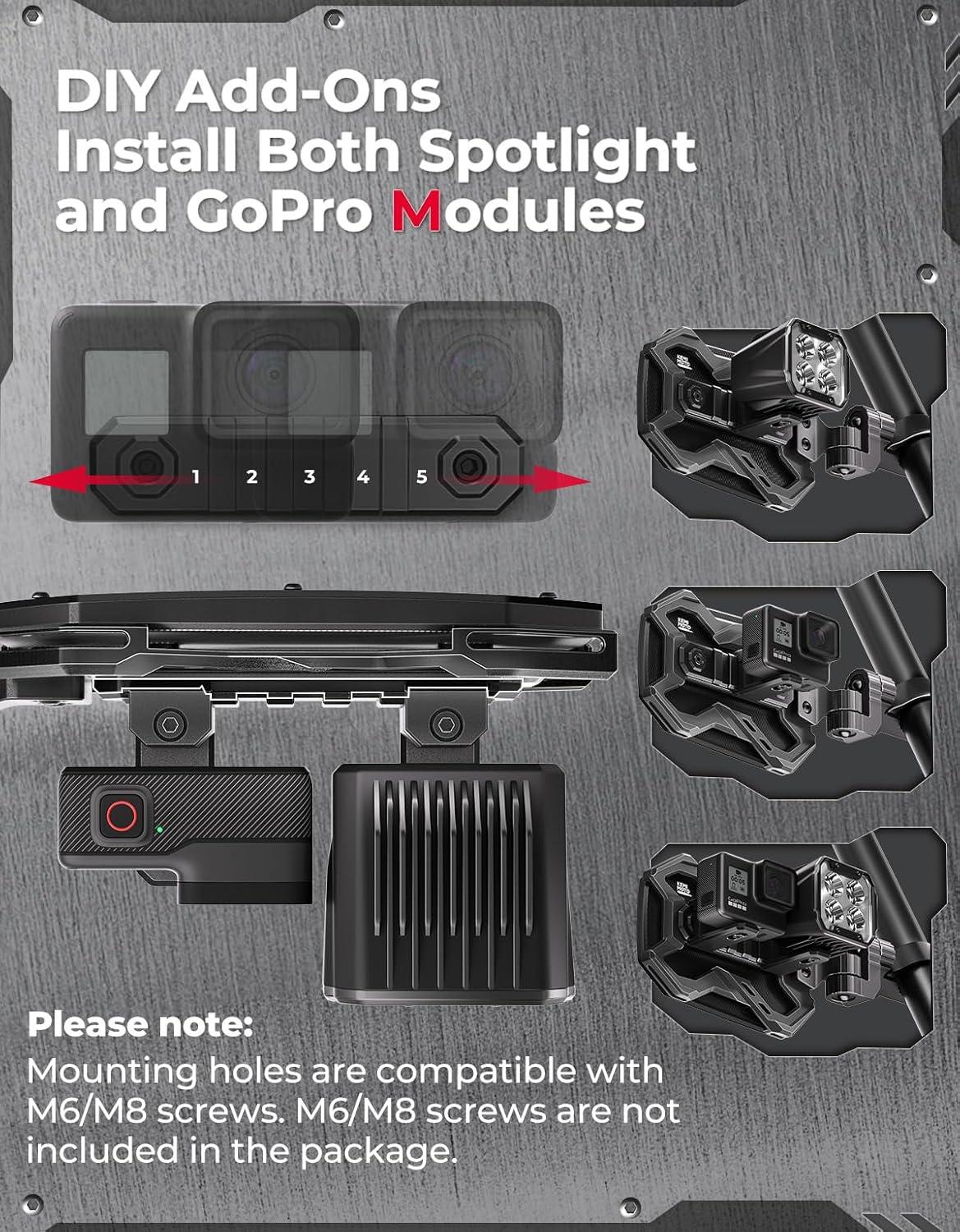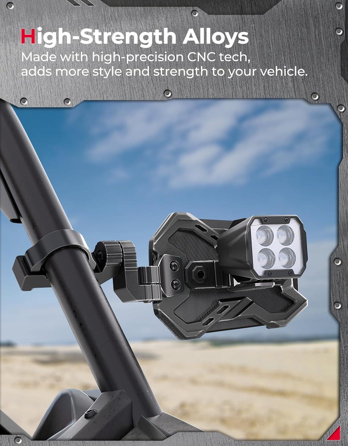 Integrated Adjustable Light Mount: The sliding track light mount design offers a variety of installation options. Its unique design allows you to freely select the mounting position for work lights, or even install two work lights or other devices like a GoPro