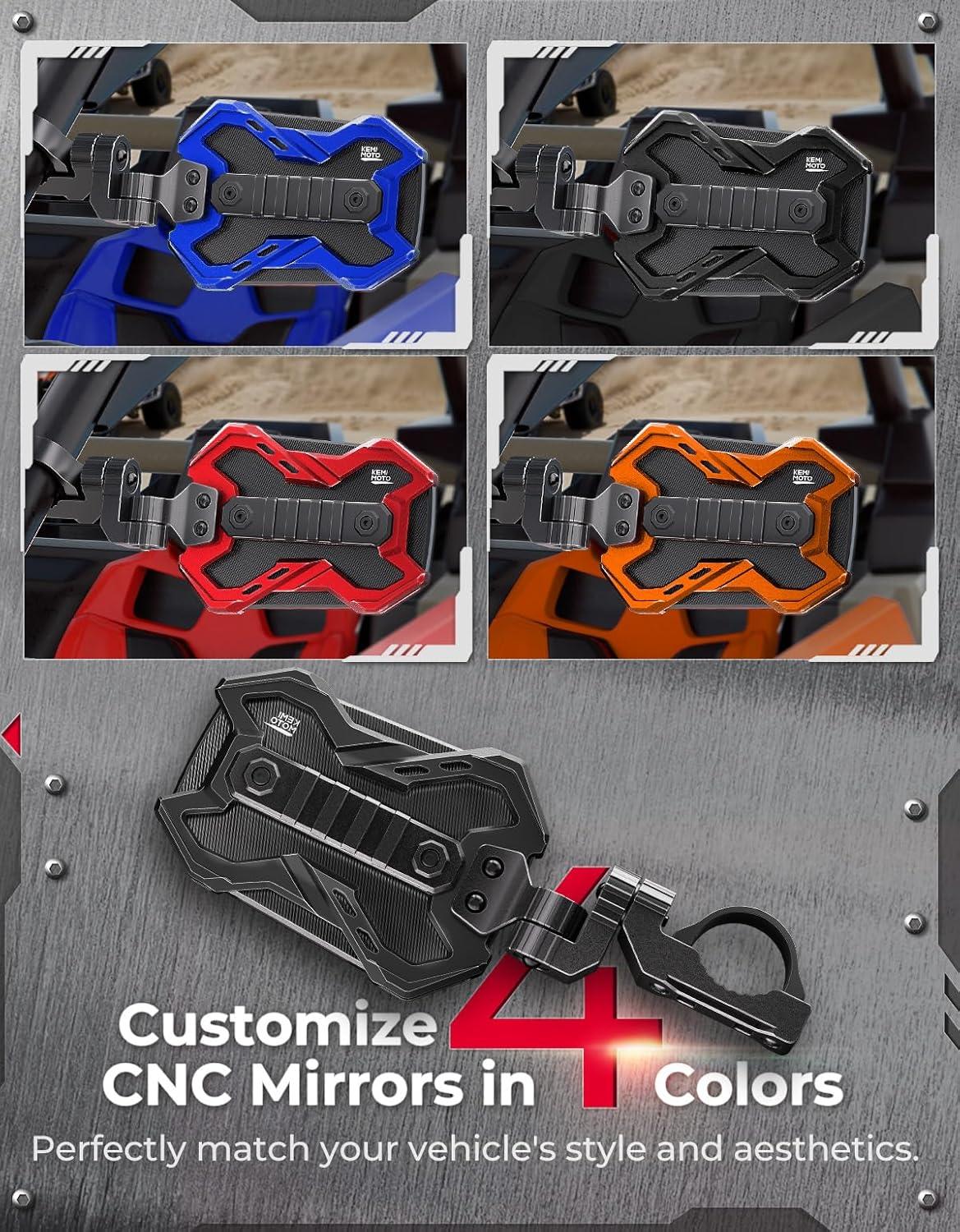 Elite Mirror: KEMIMOTO's first high-end mirror stands out from the rest. This mirror features specialized CNC craftsmanship and ultra-durable materials, having undergone countless tests to ensure it's built specifically for extreme off-road experiences