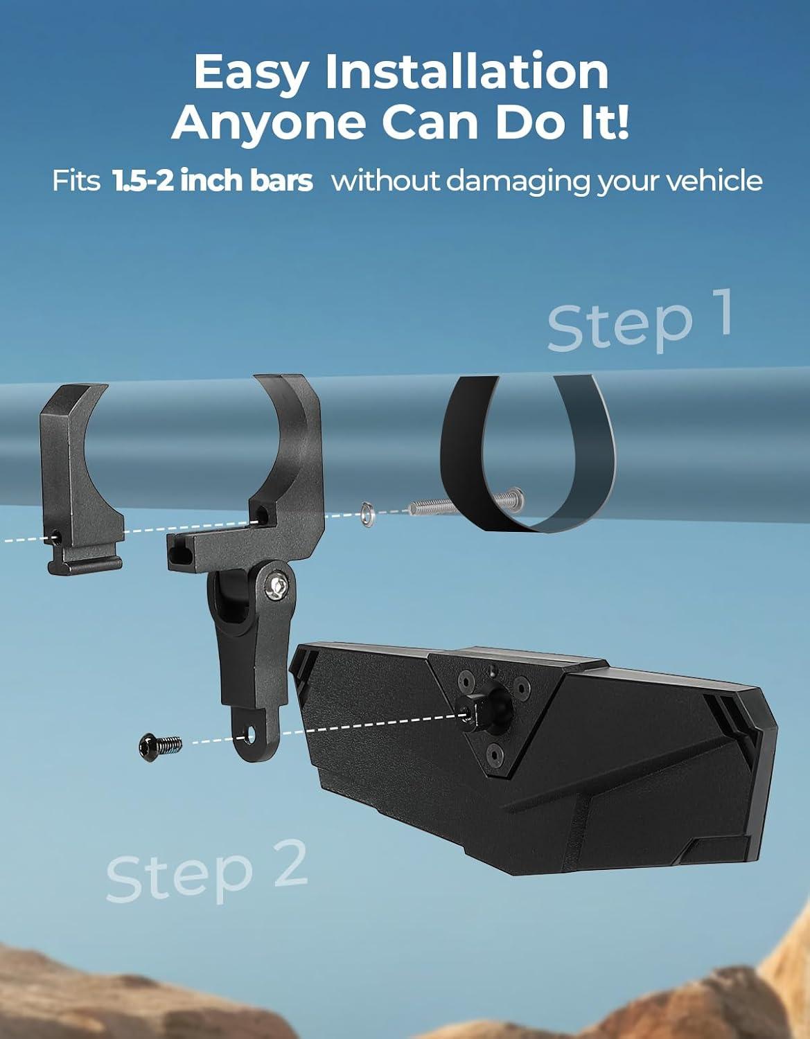 Compatible with Most UTV: You only need to tighten the screw to match the size of the roll cage, take no more than 5 minutes to install. UTV center mirror fits almost 1.5″ – 2″ diameter round tube roll cages. No need to spend extra time searching for an intermediate mirror specific to your UTV. Widely compatible with Polaris RZR, Arctic Cat Wildcat, Pioneer, CFMOTO, Kawasaki Mule/Teryx, etc