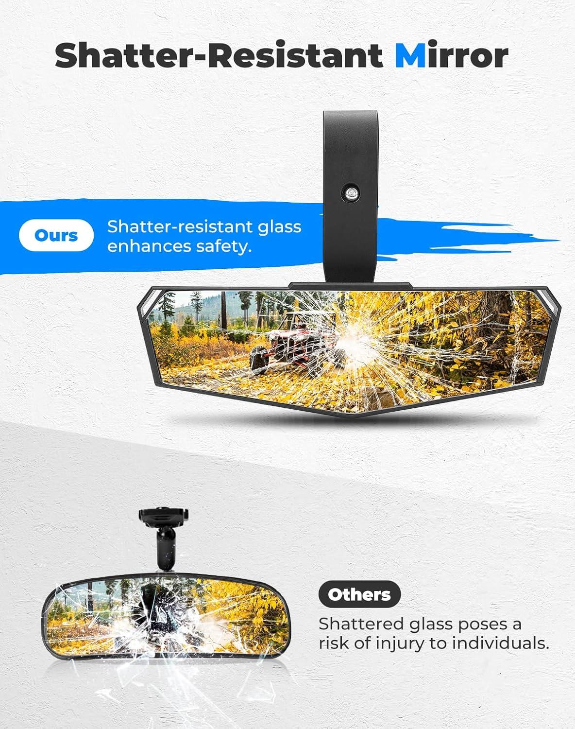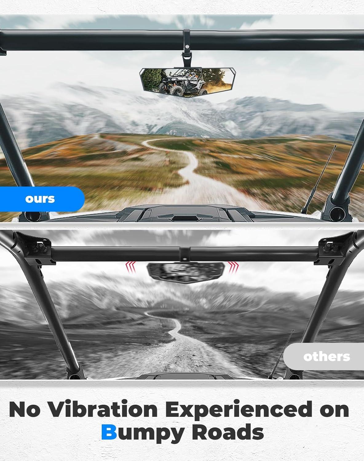 Stable and No Shaking: This UTV mirror is made from high-density materials, offering excellent impact and corrosion resistance. Secured with screws, it ensures stability and a clear view during your ride, making driving safer