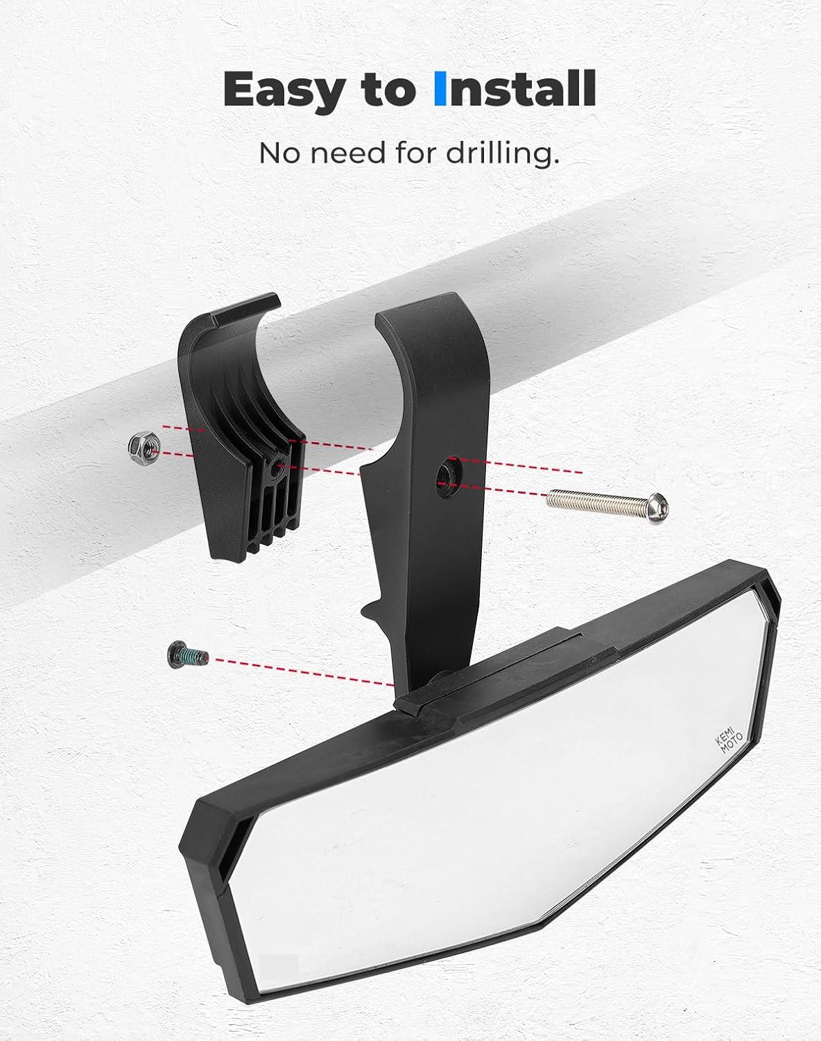 imageKEMIMOTO UTV Rear View Mirror with Extended Bracket for 1752 Roll Bar Cage Center View Mirror Compatible with Talon Pioneer Polaris RZR PRO XP Mule Teryx Can Am Commander Maverick Gator Rhino
