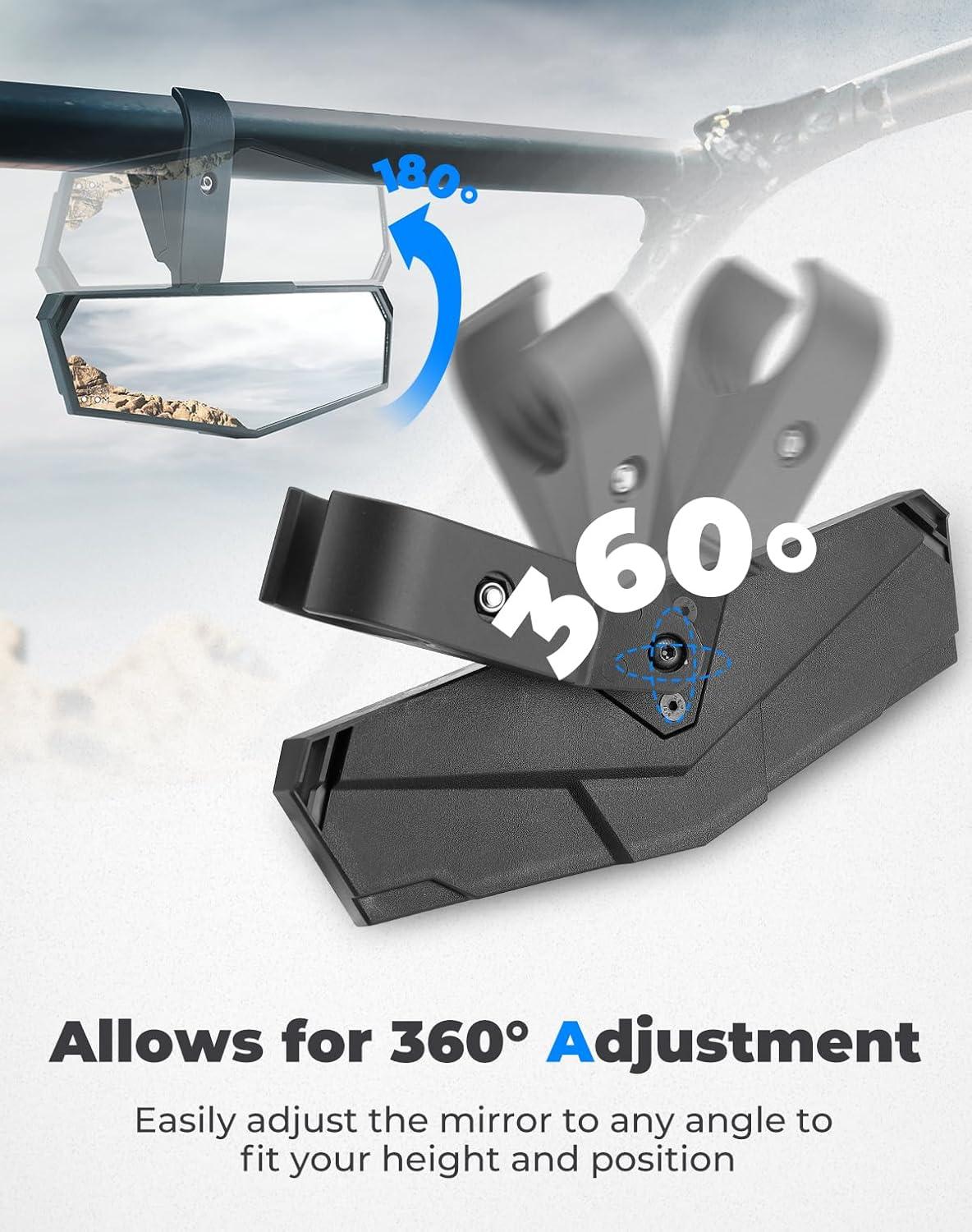 Adjustable Angle: The UTV center rearview mirror features a ball joint design that can rotate 360 degrees. It can be adjusted according to your height, ensuring you achieve the optimal mirror position