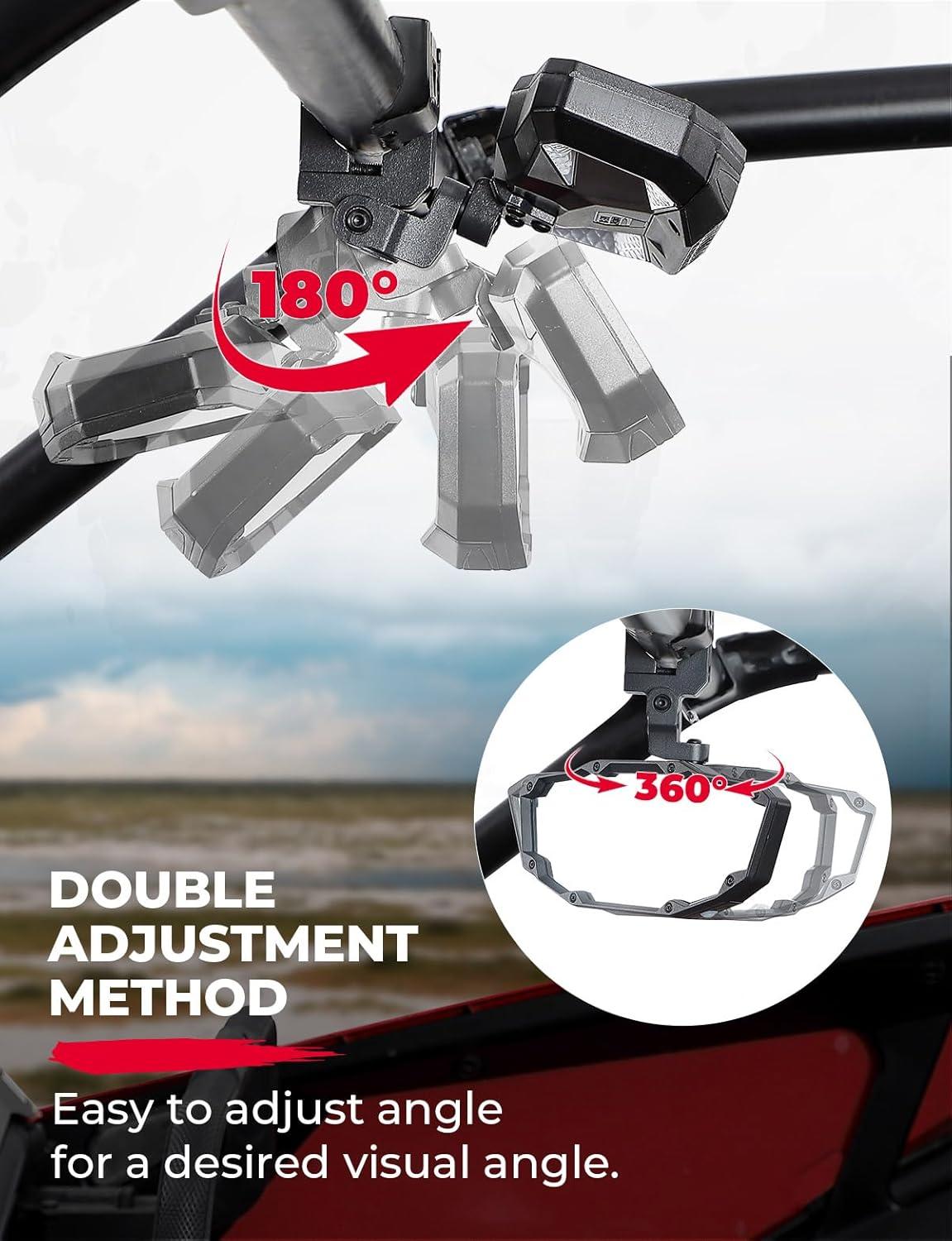 Personalized Adjustment: Eliminate blind spots with our 360° adjustable rear view mirrors. The KEMIMOTO rearview mirror comes with adjustable joints, allowing you to adjust the rear mirrors for a better view. When you need to transfer your UTV, simply fold up the mirror out of the way without having to remove it