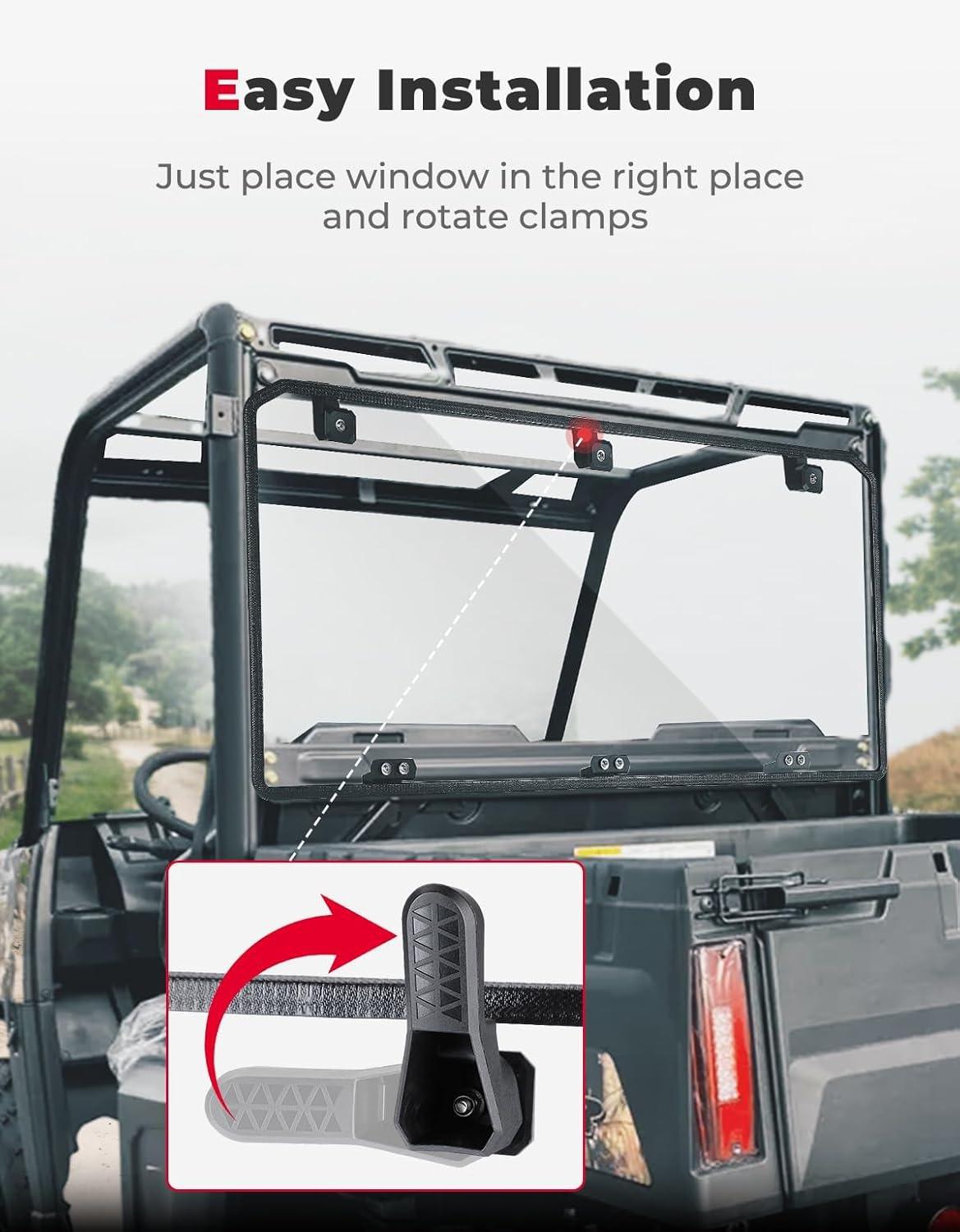 Good Protection: The rear windshield will Protect your vehicle well and keep drivers and passengers out of rain and dirt while riding outdoors after installing it. It is applied to any weather
