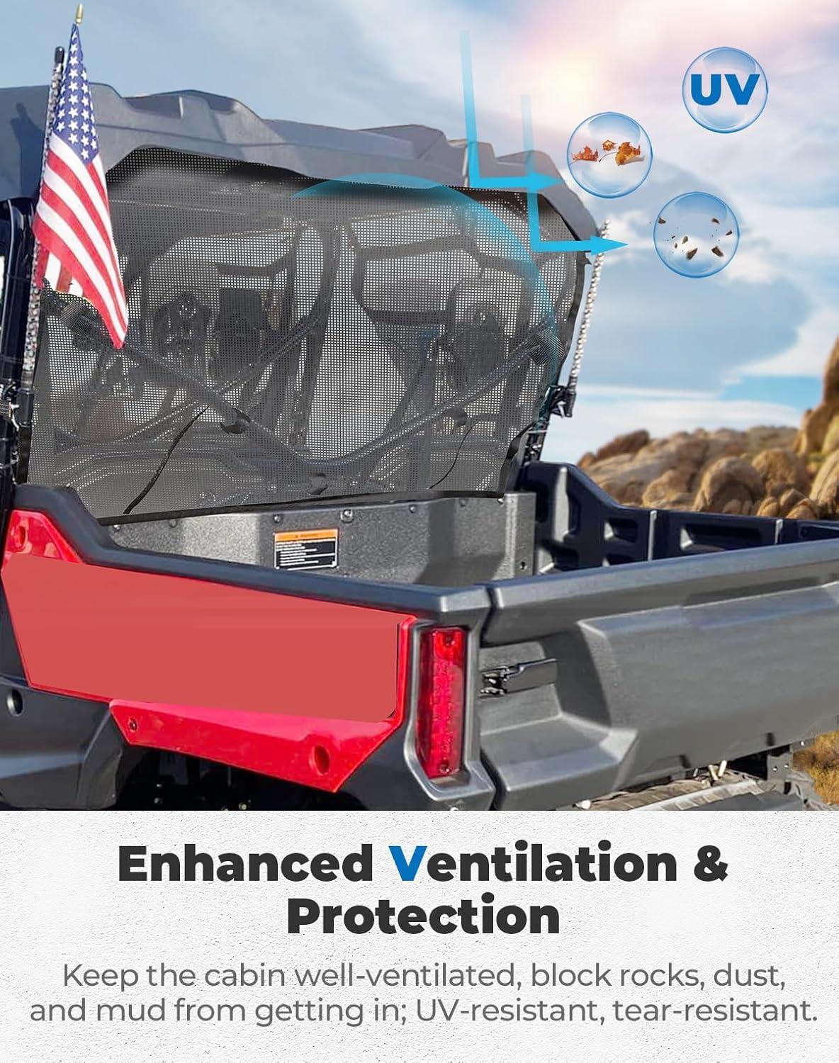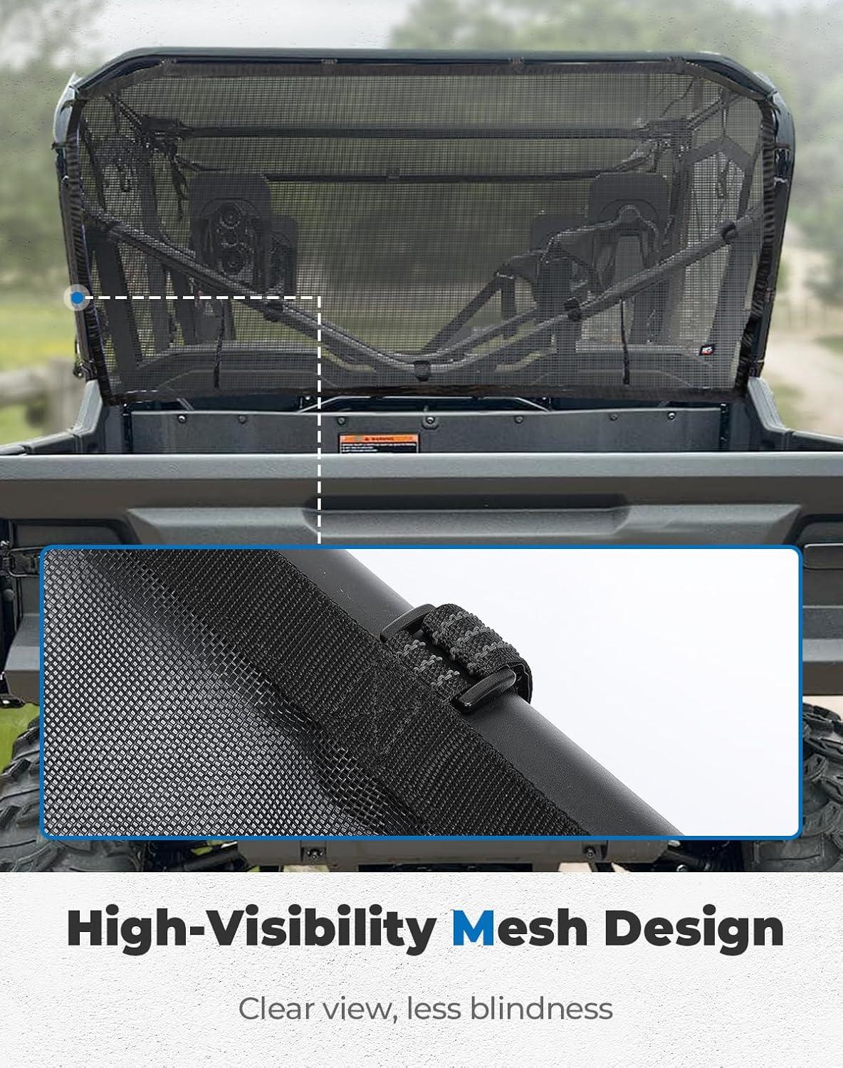Clear View Design: The high-visibility rear dust mesh screen provides an unobstructed view from inside the SXS, ensuring your safety while driving