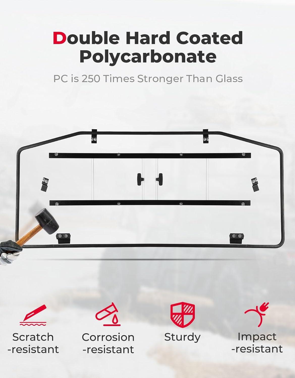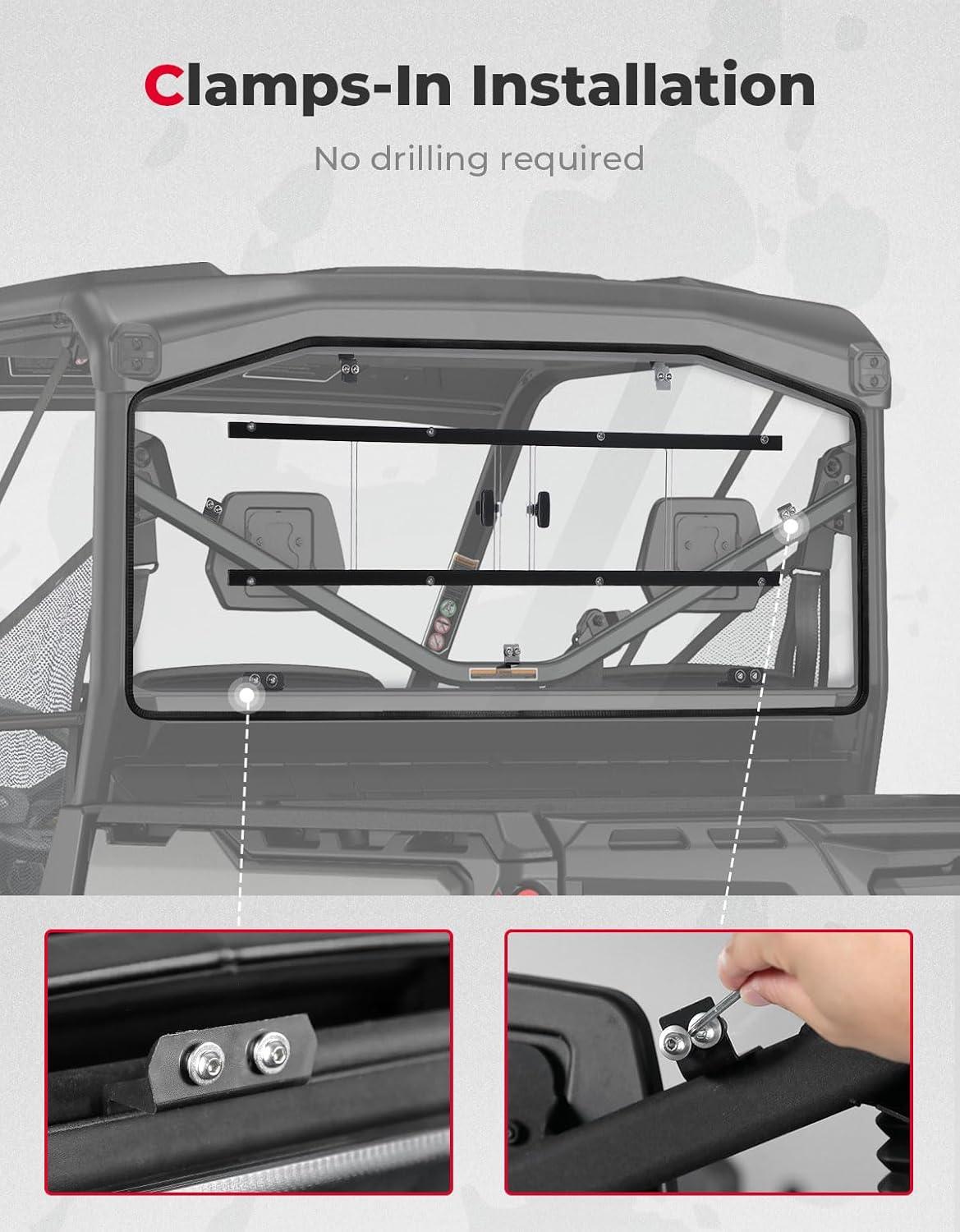 Durable PC Material: UTV rear window compatible with defender is made from high-toughness polycarbonates (PC) material, which has the feature of resistance to cracking and breaking, ensuring long-lasting use