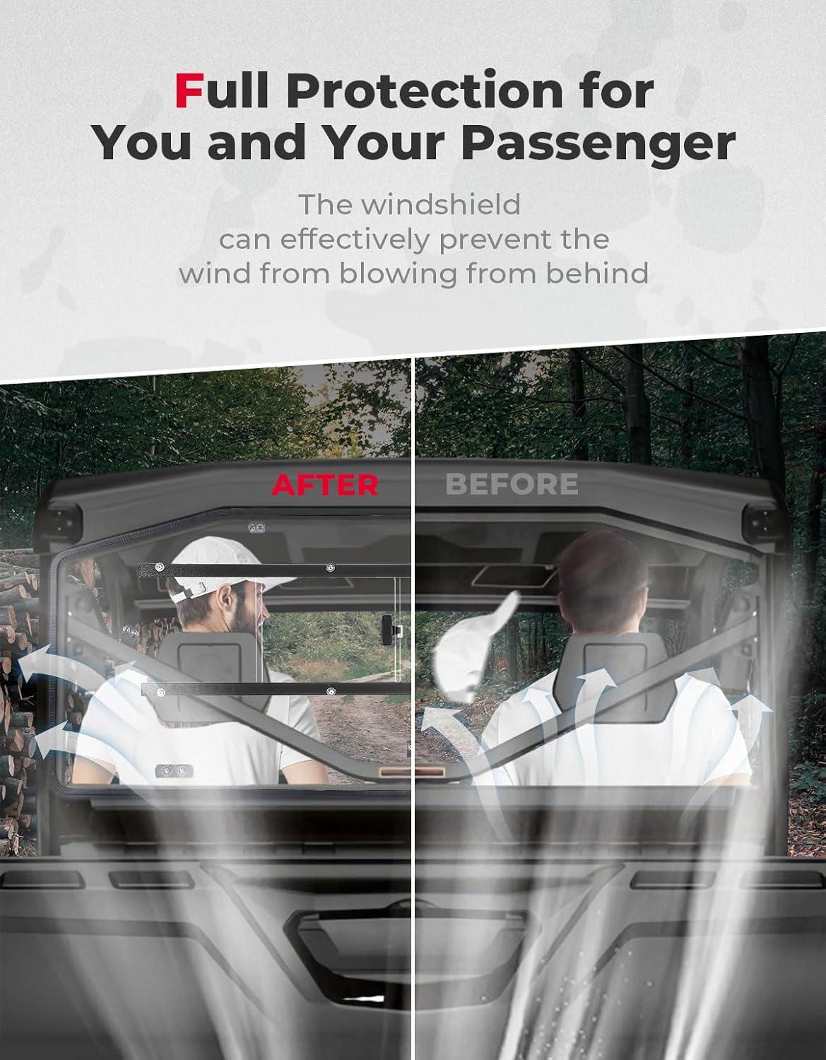 All-Weather Protection: The UTV rear windshield compatible with defender offer comprehensive protection against wind, dust, and mud so as to keep you comfortable and safe in all weather conditions