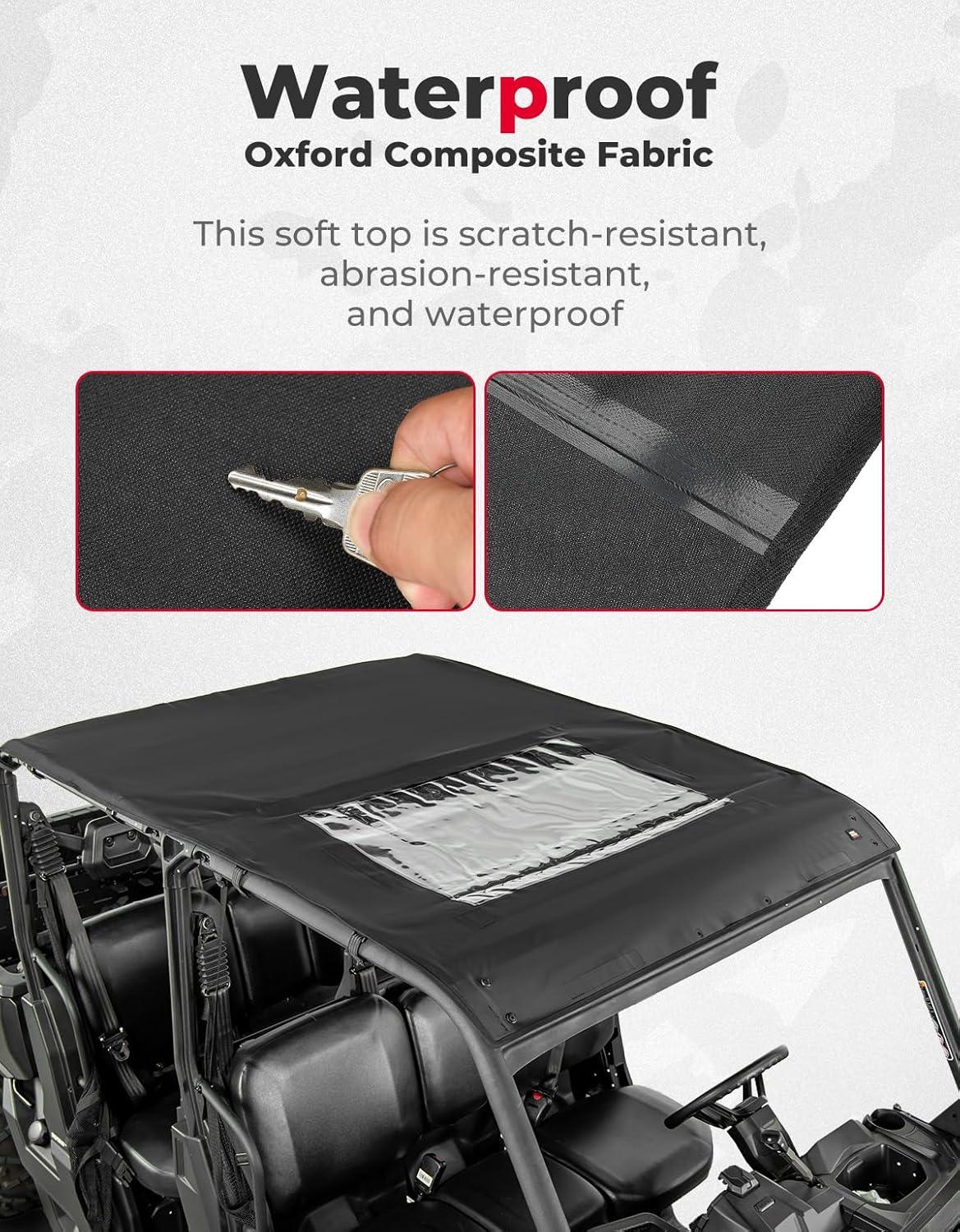 Fitment:KEMIMOTO soft rooftop compatible with 2022+ Can-Am Defender MAX HD 7; compatible with 2017-2021 Can-Am Defender MAX HD 8/ 8 DPS/ 8 XT; compatible with 2022+ Can-Am Defender MAX HD 9 DPS; compatible with 2017+ Can-Am Defender MAX HD 10 DPS/ 10 XT/ 10 XT Cab/ 10XMR/ 10 Lone Star Edition/ 10 Limited