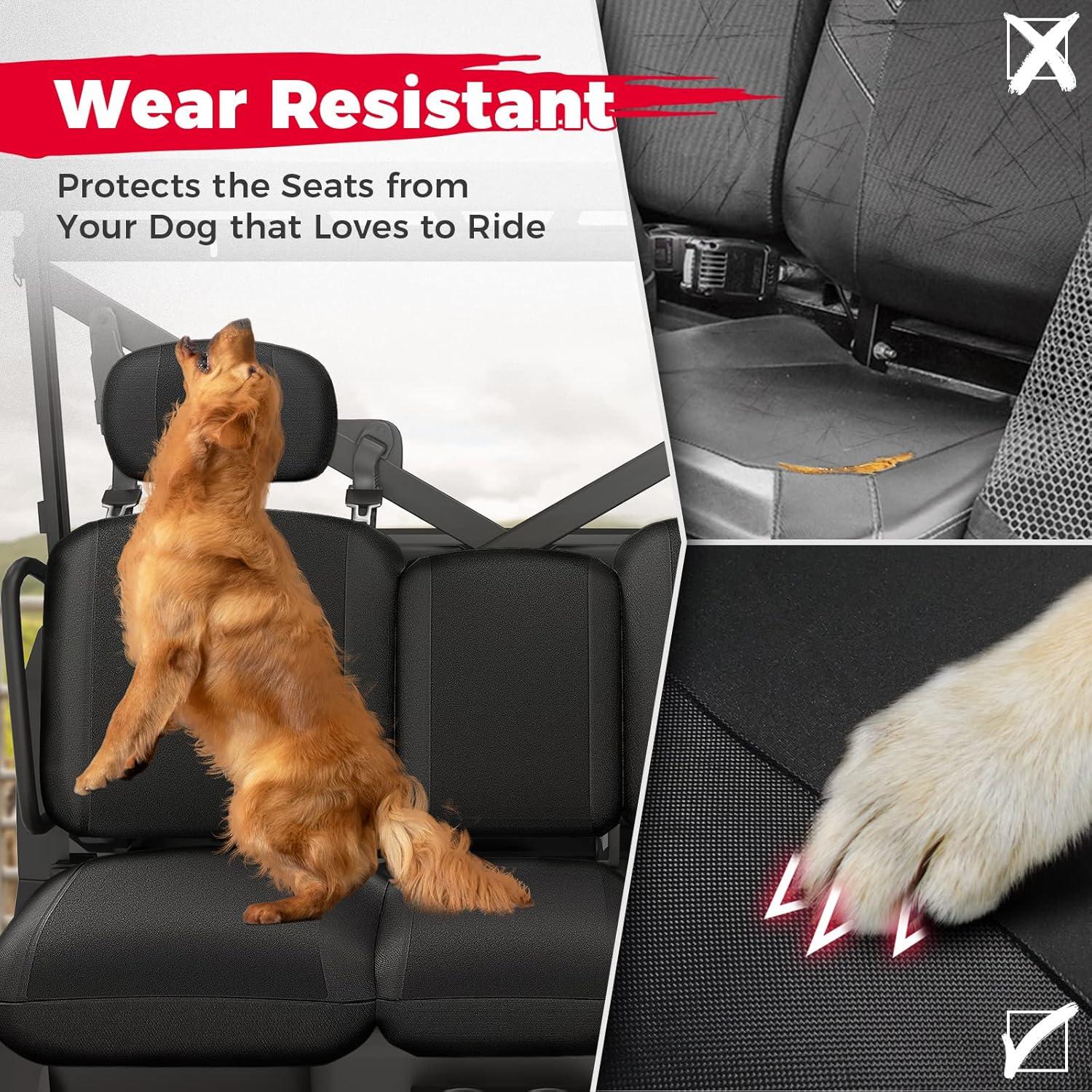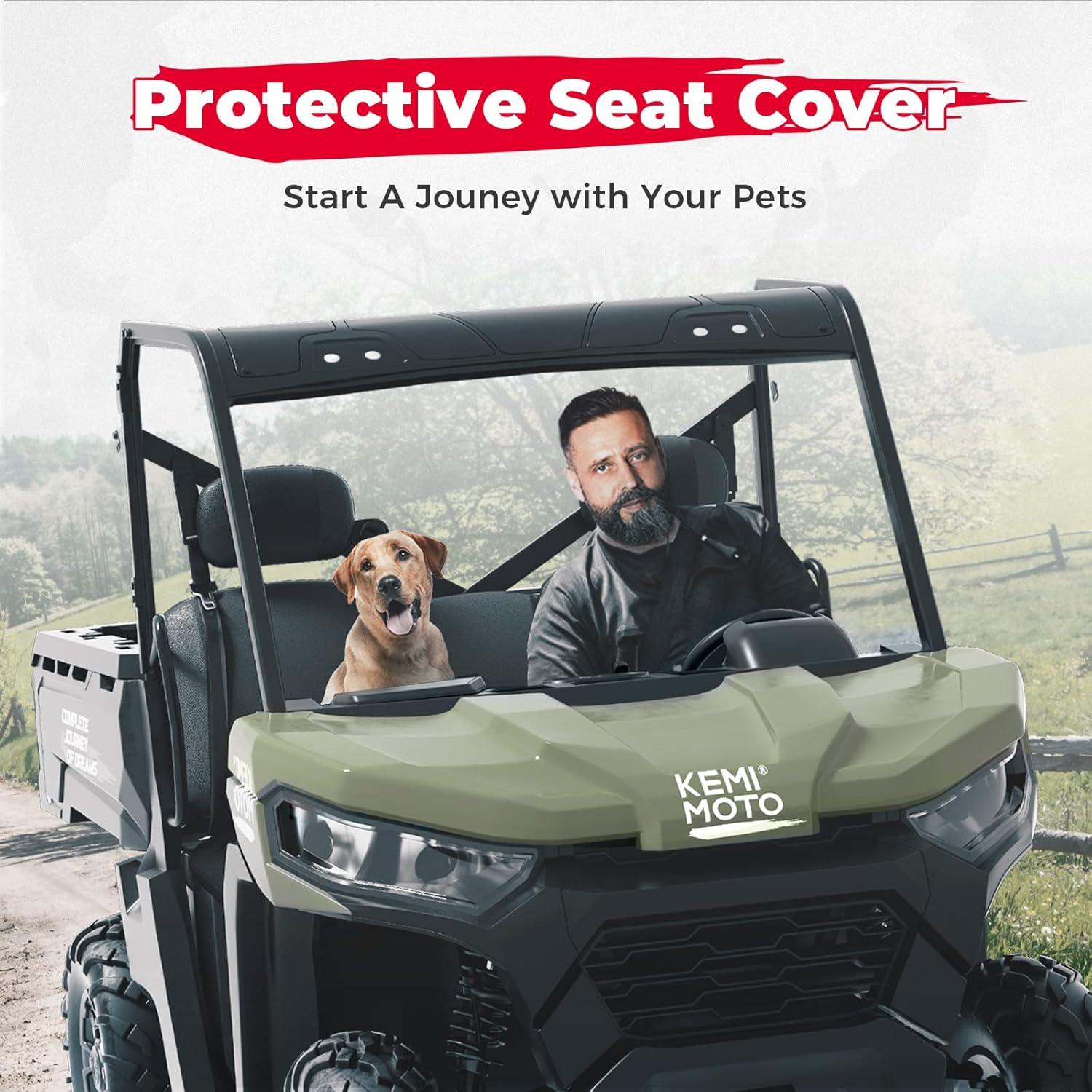Save and Protect Your Seat:KEMIMOTO water-resistant defender seat cover is made of scratch-resistant 1680D oxford fabric, which will protect defender seats from your dog's claws. Have fun taking your dog that loves to ride. UTV seat cover also helps make the old worn seat look new again