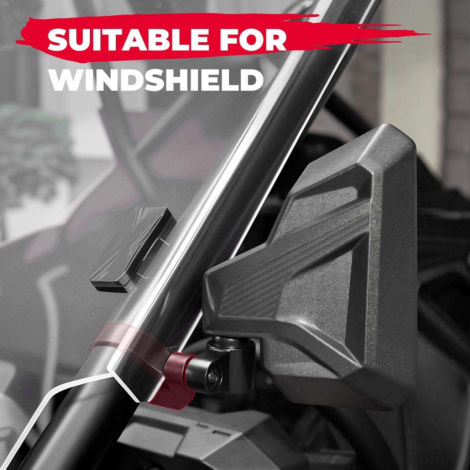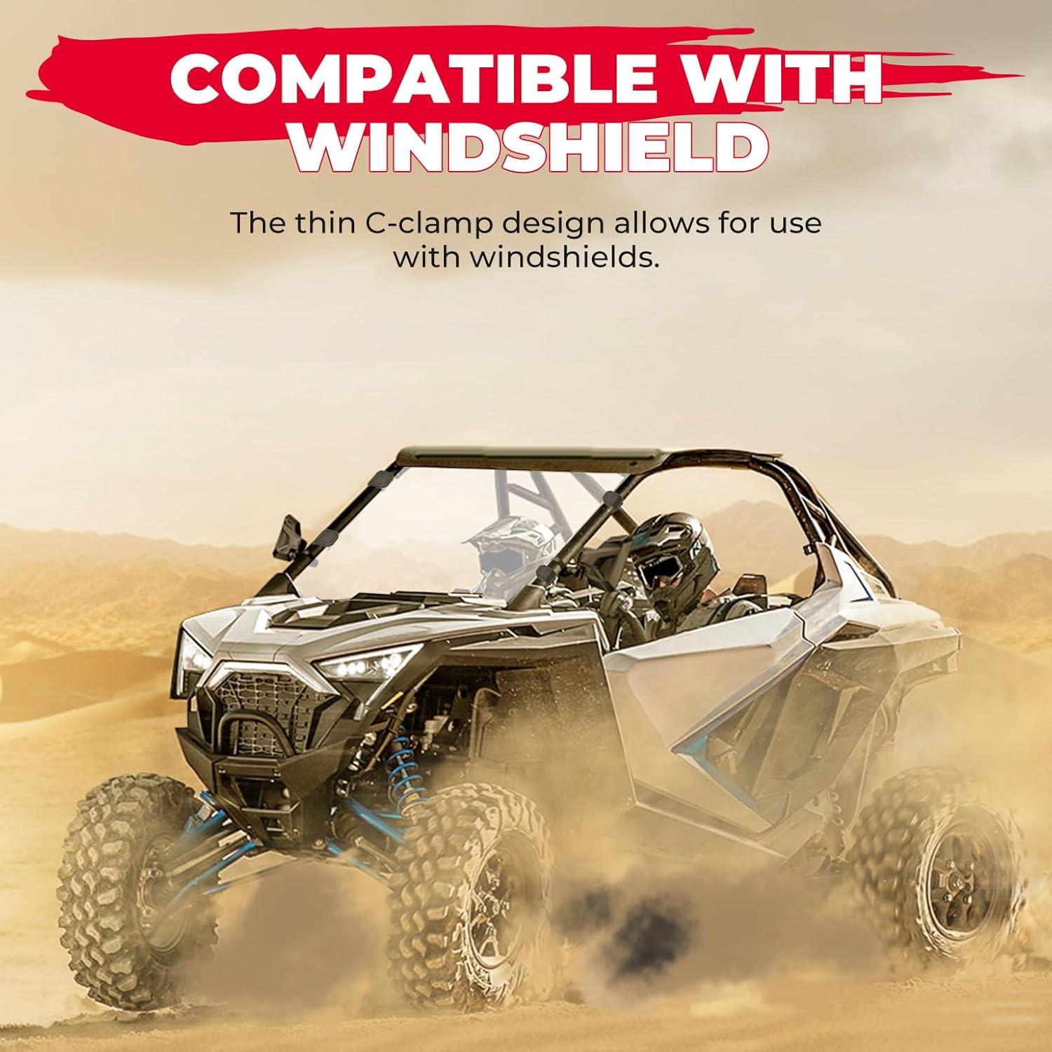 Upgraded design for fit with windshield – Special low profile C clamps design allows you to install the RZR mirrors with the windshield. No more worries of the compatibility between UTV roll cage mirrors and windshield