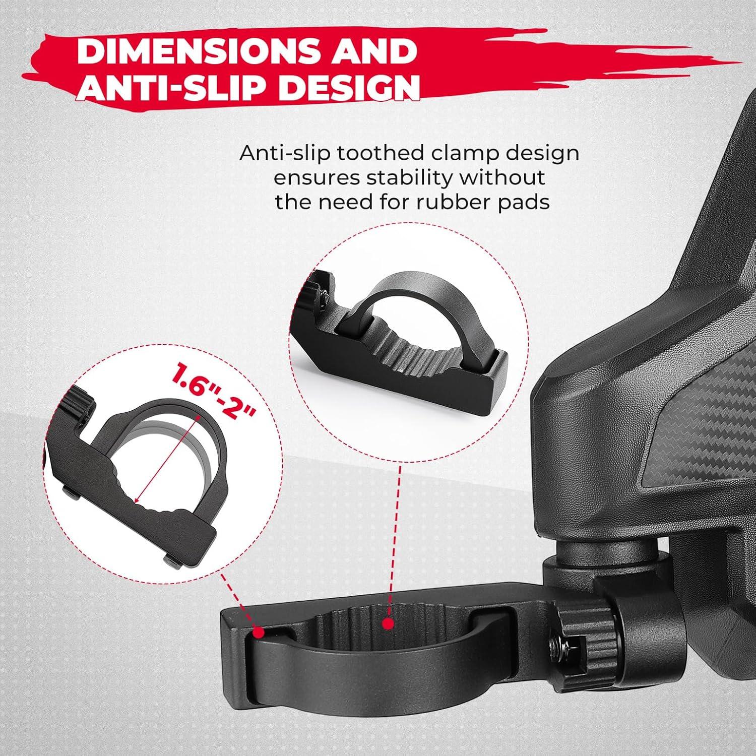 Roll bar clamp for quick install – The anti-slip clamp makes the side by side mirrors be installed without any drill work. Just simply tighten the screws and complete the installation. Sturdy and no vibration.