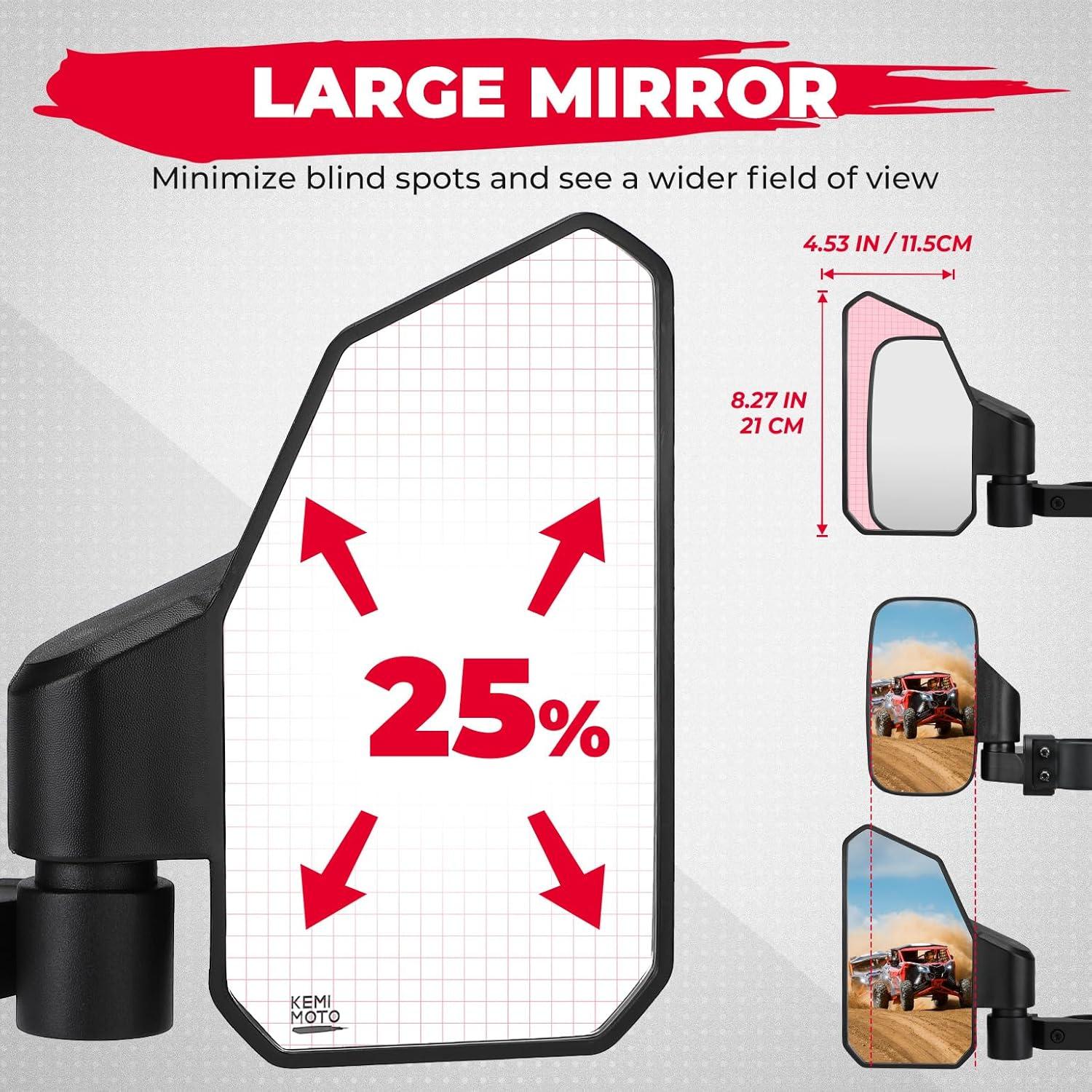 High-quality for offroad adventure – Made of high impact ABS housing and shatter-proof tempered glass, KEMIMOTO side view mirrors for UTV can maximize your safety and prevent you from getting hurt by broken glass.