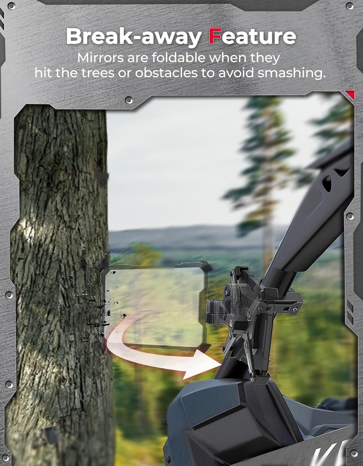 STAND OUT: KEMIMOTO side by side mirrors are available in four distinct colors to perfectly match your UTV. Achieve a seamless, stylish look that makes your vehicle unique. Turn heads and make a statement with X-Series UTV Mirrors