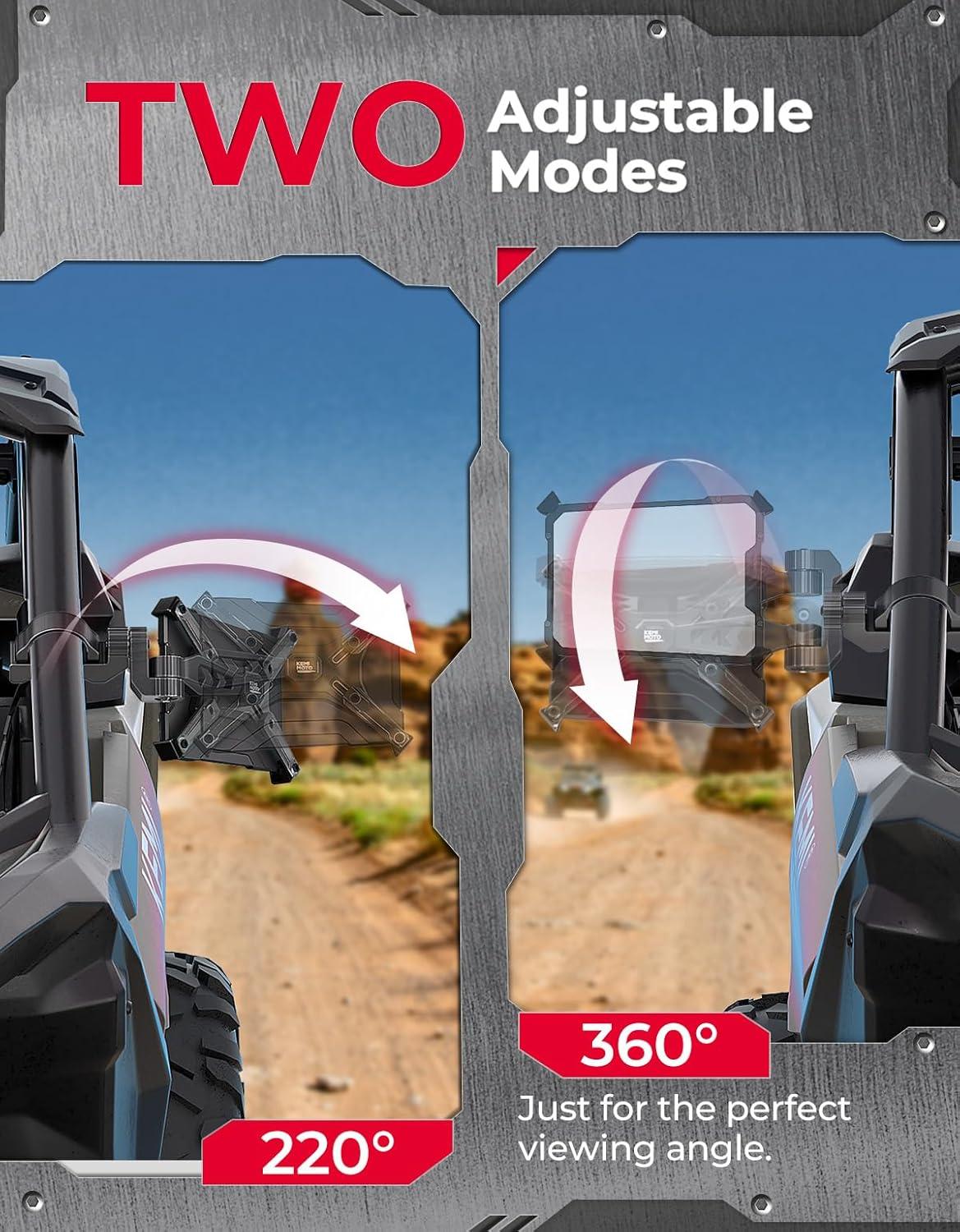 WIDE ADAPTABILITY: SXS mirror is compatible with 1.65″ to 2″ UTV roll cages. Compatible with Polaris RZR, Mule, Pioneer, Zforce, Rhino… The adjustable mounting bracket allows for horizontal and vertical rotation, enabling effortless angle adjustments and providing you with a wide field of view