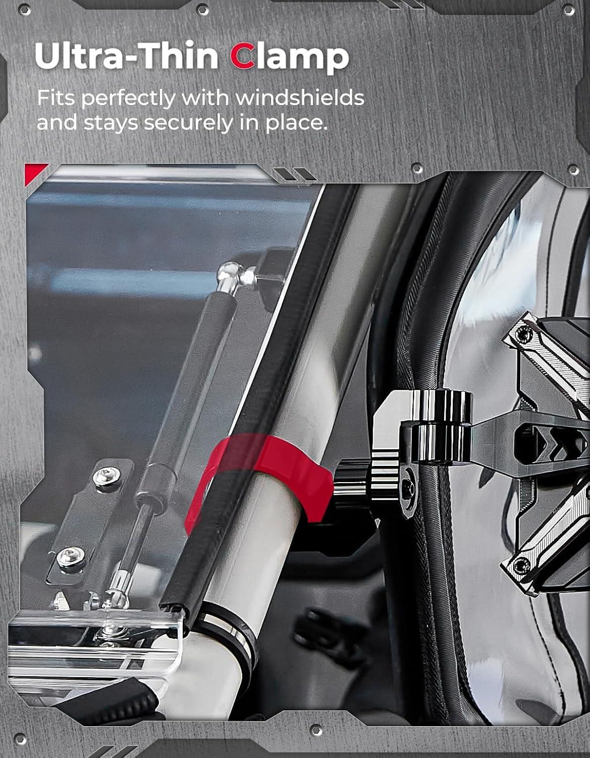 EASY TO INSTALL: Ultra-thin clamp fits perfectly UTV with windshields and stays securely in place, allowing for quick and easy installation without removing the windshield. Installation videos are available to help you install it with ease