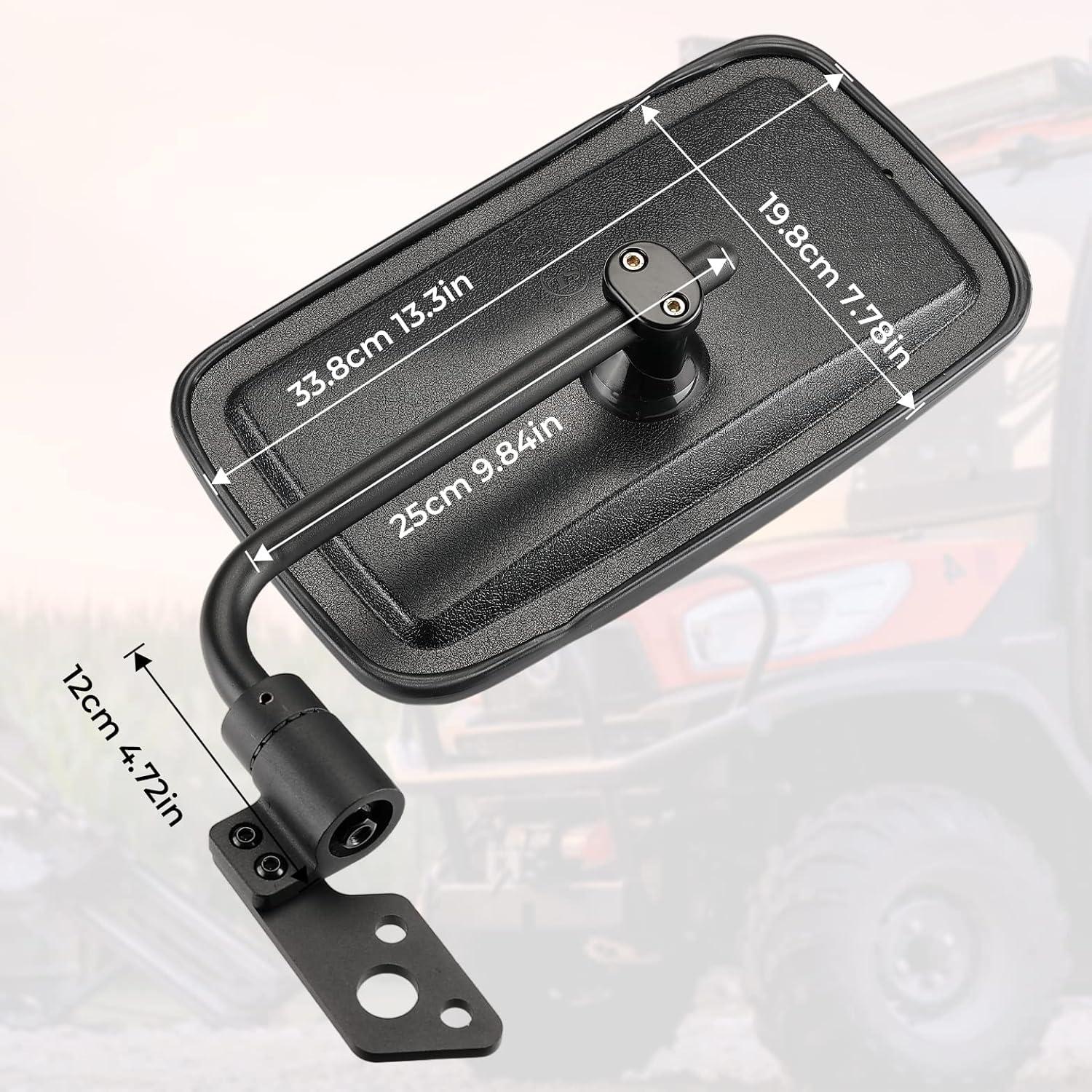 Wider Vision and Safer: KEMIMOTO UTV side mirror dimensions are 13.38″ wide and 7.87″ tall, with a convex mirror that looks big enough for wider vision, making it easy to see blind spots behind. Even in harsh terrain and during turns, it also can provide drivers with a safer driving experience