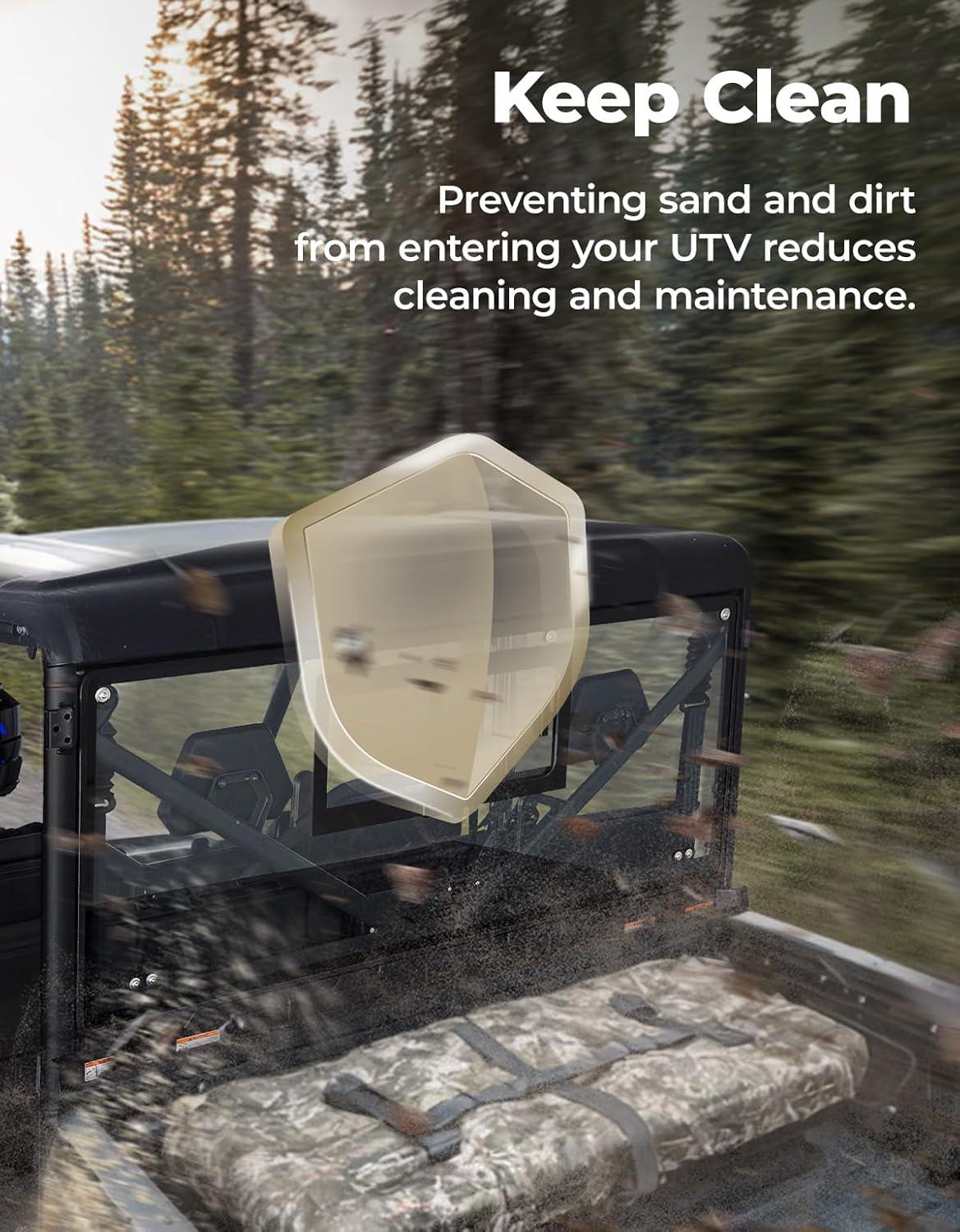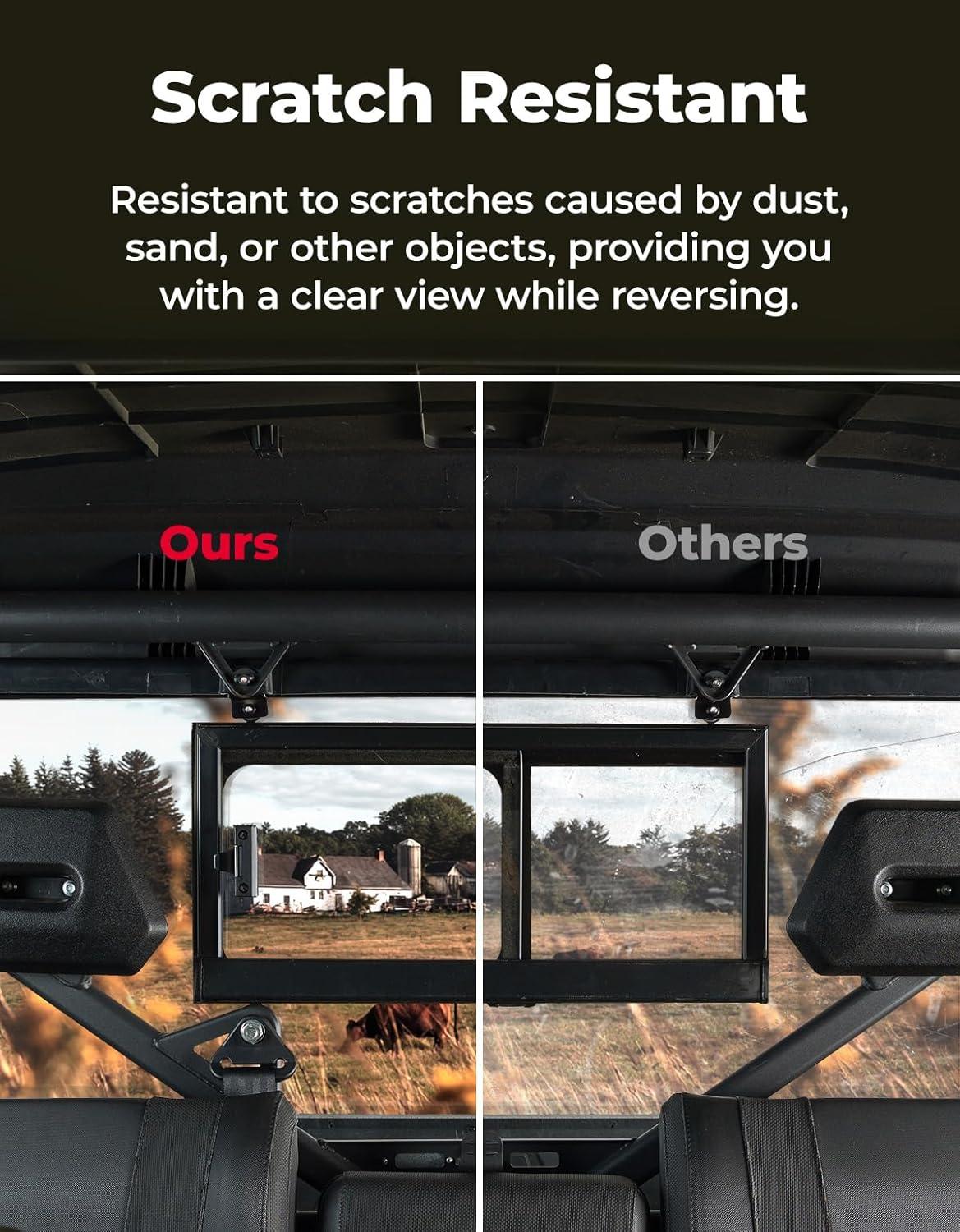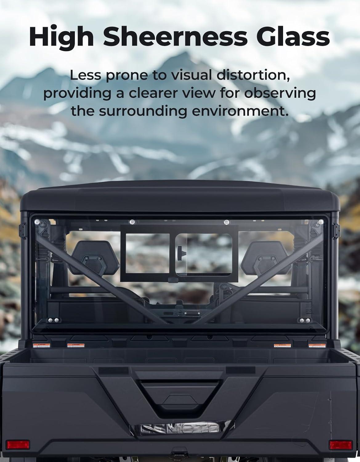 Glass More Scratch-Resistant Than PC: The KEMIMOTO glass back windshield, made with 5mm-thick safety glass and a durable steel frame, delivers superior scratch resistance. It’s tough enough to handle extreme conditions like heavy sandstorms, thick branches, and flying debris, all while maintaining a crystal-clear view. Say goodbye to those annoying, sparkling scratches and enjoy pristine visibility for countless adventures ahead