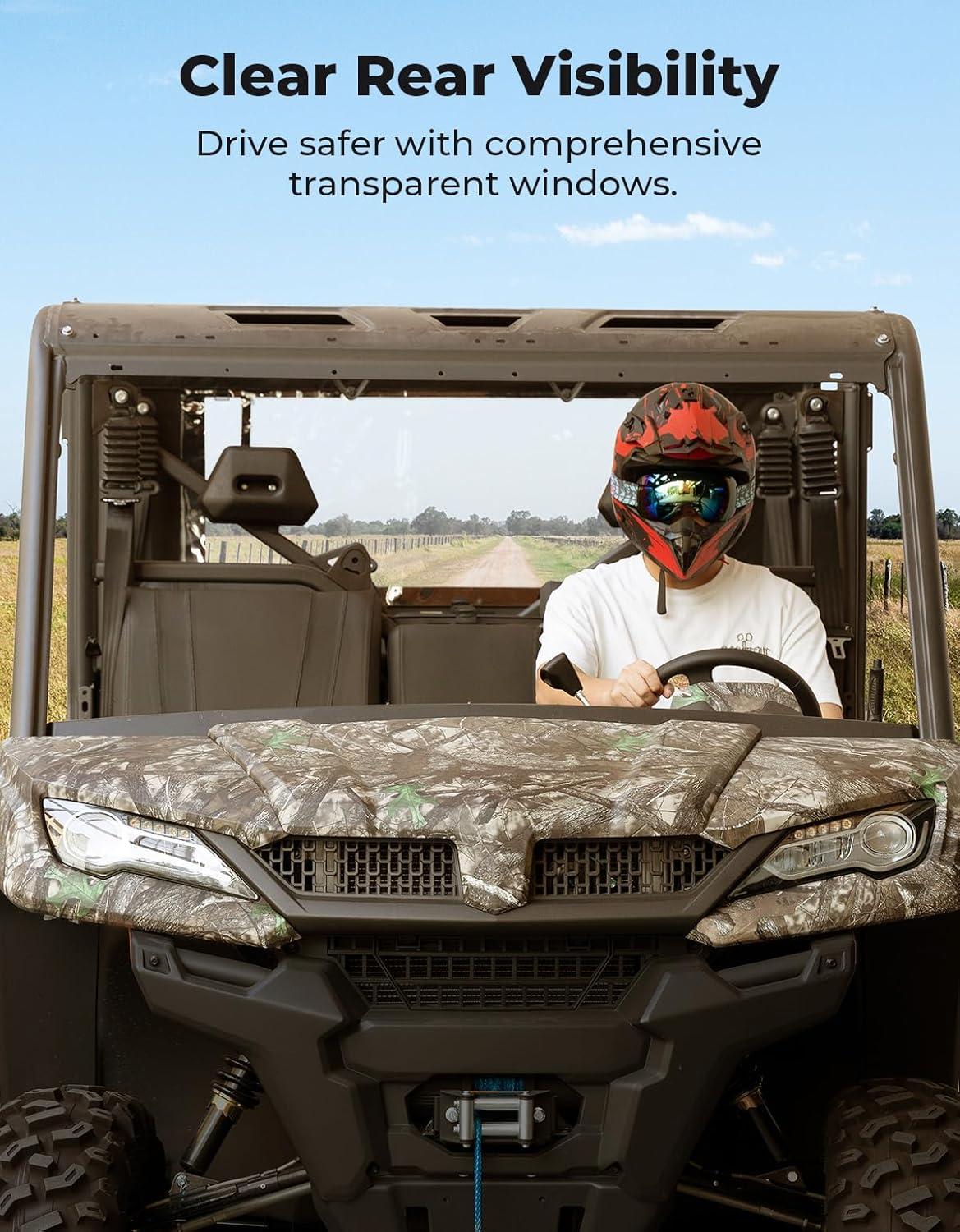 High-Quality Material–The KEMIMOTO UTV cargo bed cover features a steel frame with tubular support bows and 600D water-resistant Oxford fabric with clear windows. It offers effective protection against wind, snow, sand, mud, tree branches, rain, and UV rays